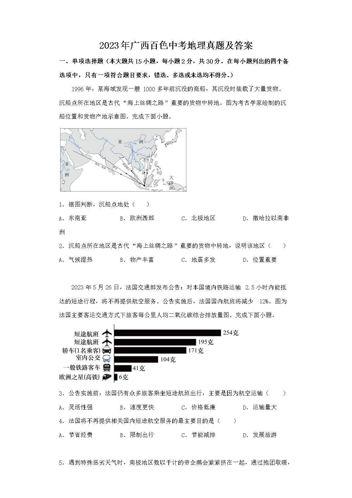 【文档预览】 文档大全网整理发布2023年广西百色中考地理真题及答案(Word版),前五页预览如下:
