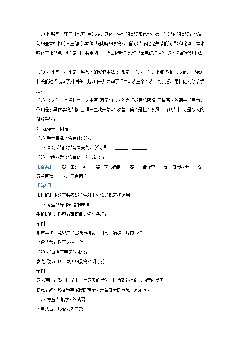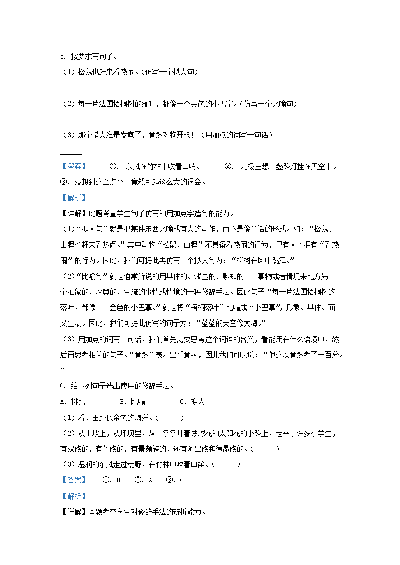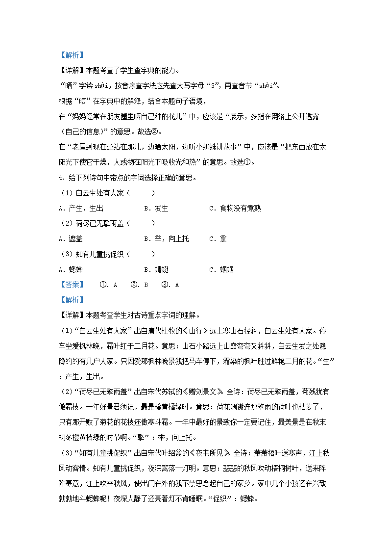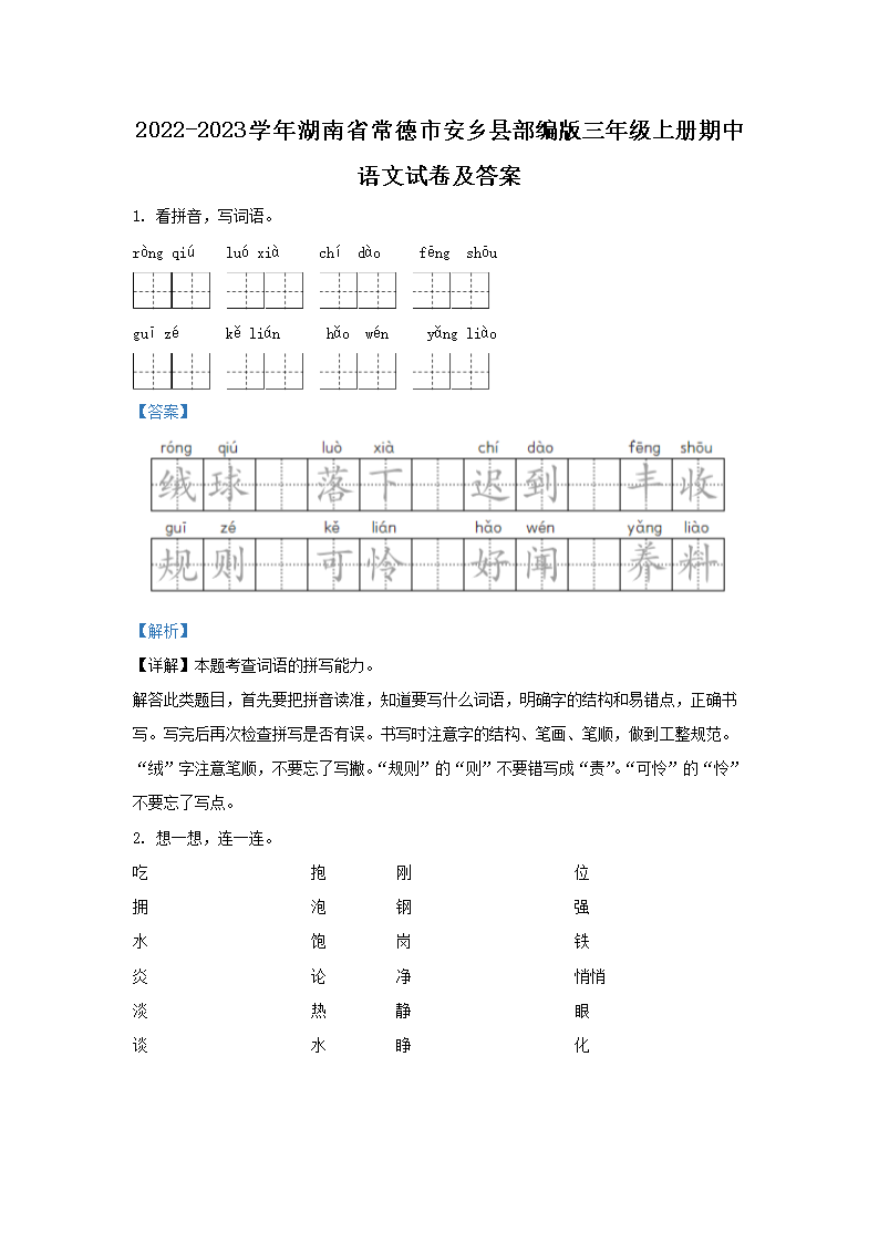 2022-2023学年湖南省常德市安乡县部编版三年级上册期中语文试卷及答案(Word版)09-26