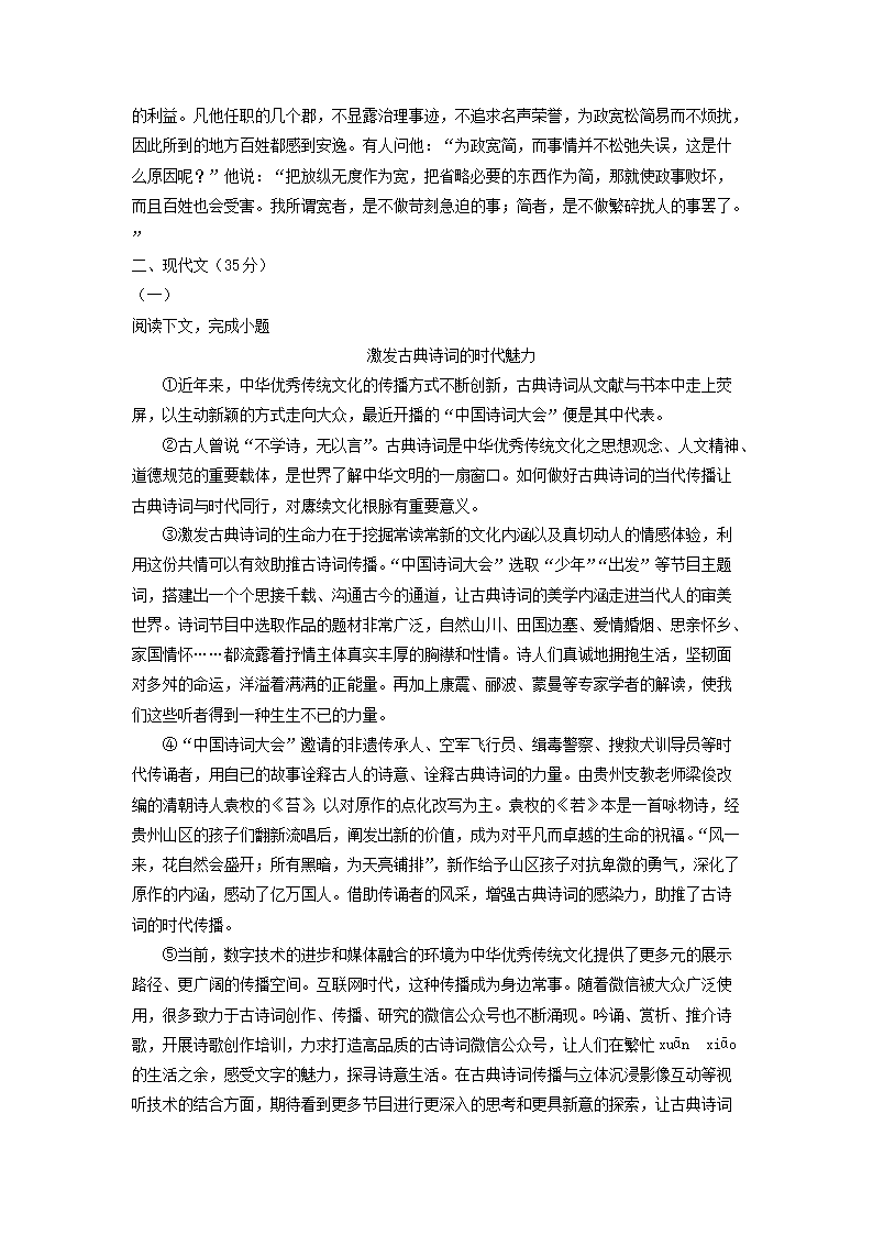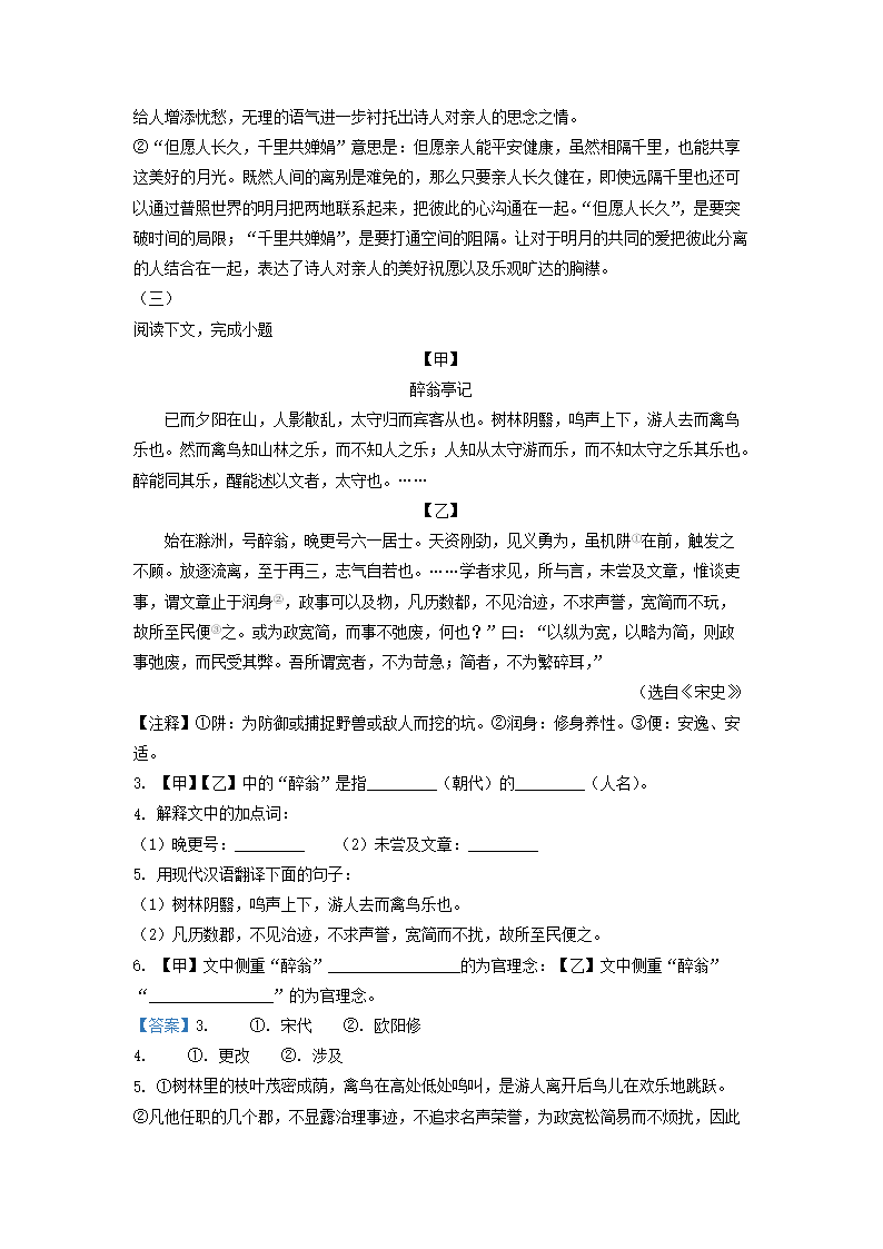 2022-2023学年上海市崇明区九年级上学期语文期中试题及答案(Word版)10-18
