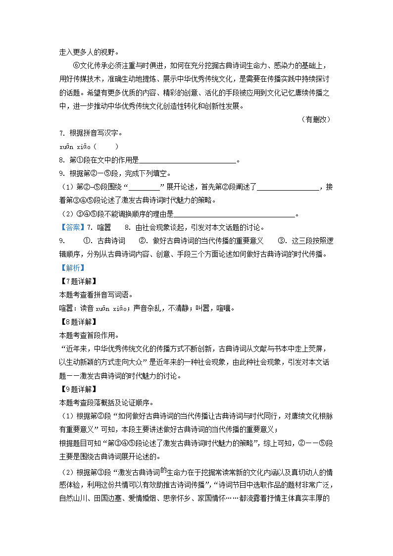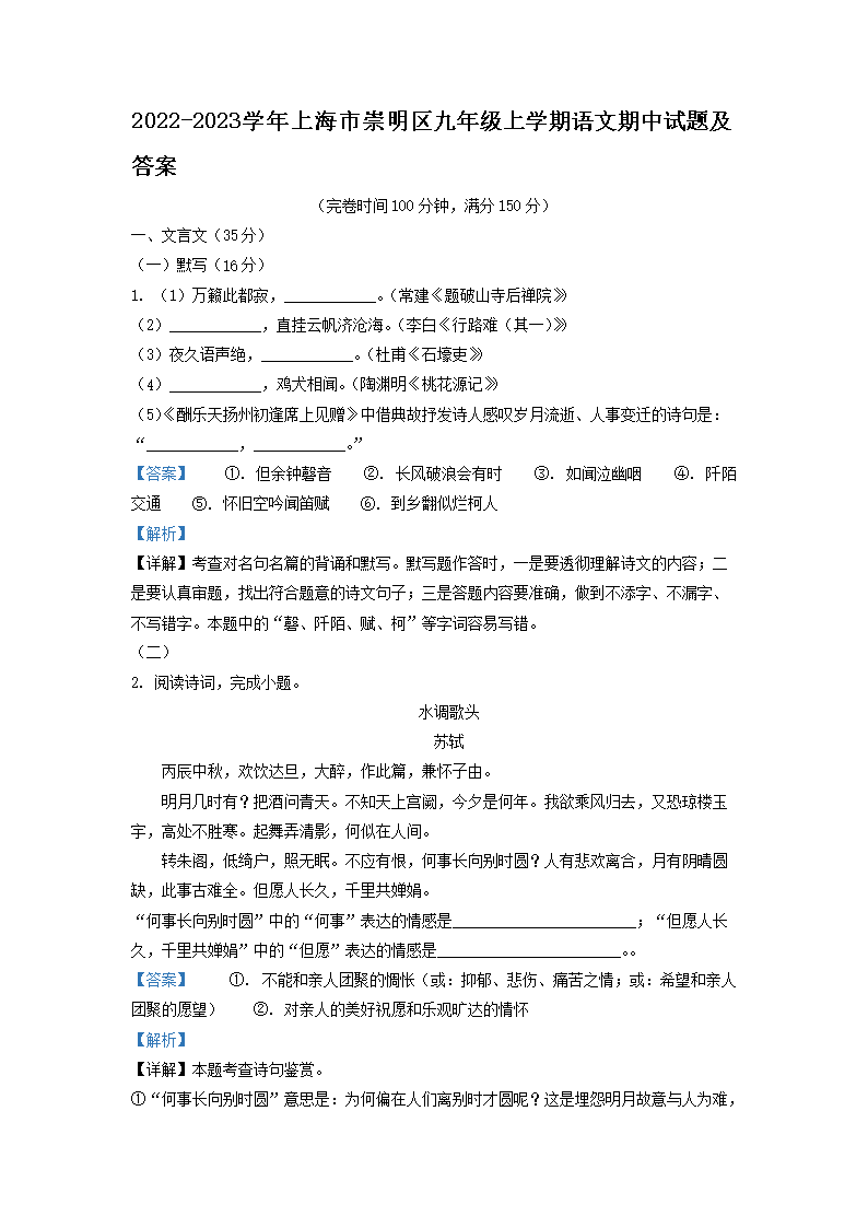 【文档预览】 文档大全网整理发布2022-2023学年上海市崇明区九年级上学期语文期中试题及答案(Word版),前五页预览如下: