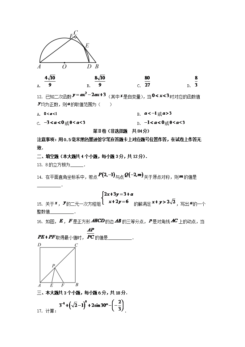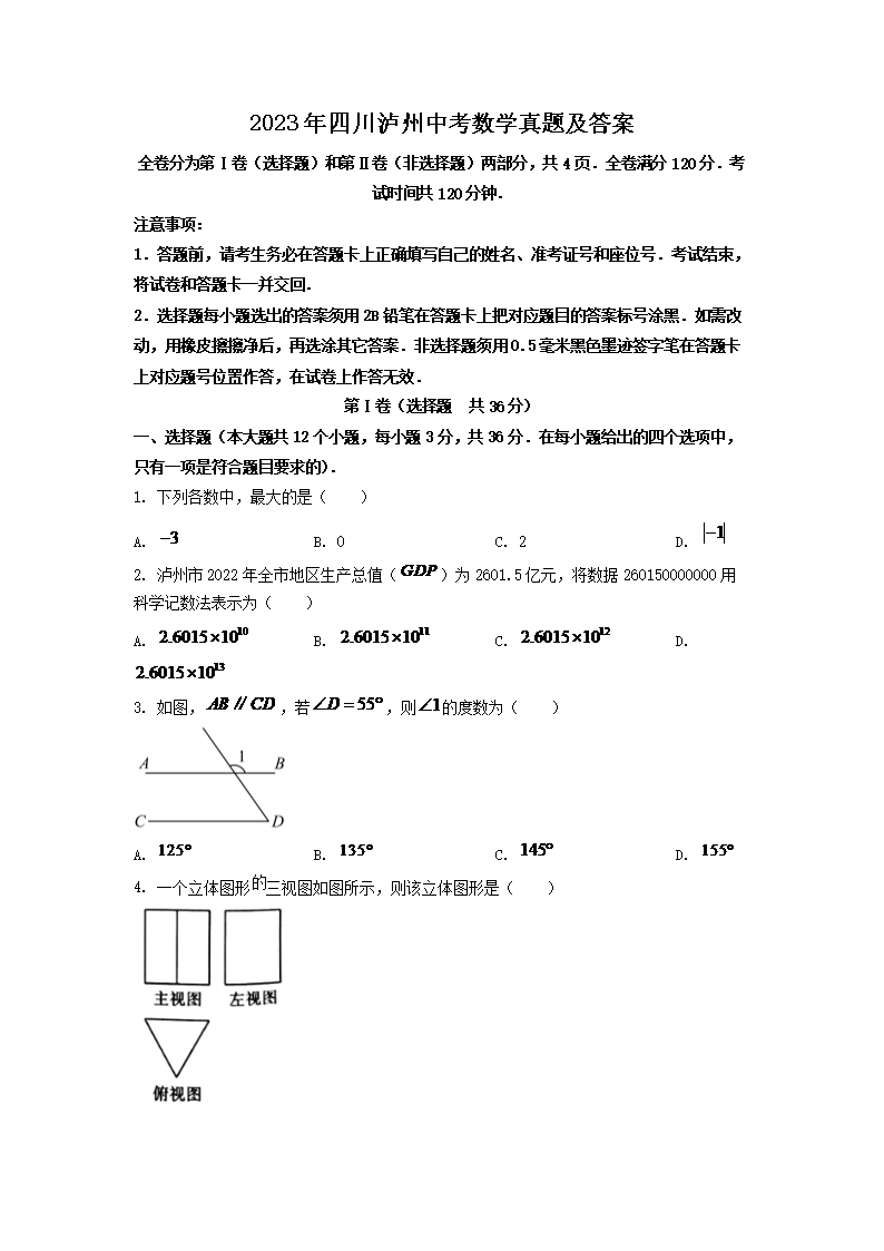 【文档预览】 文档大全网整理发布2023年四川泸州中考数学真题及答案(Word版),前五页预览如下: