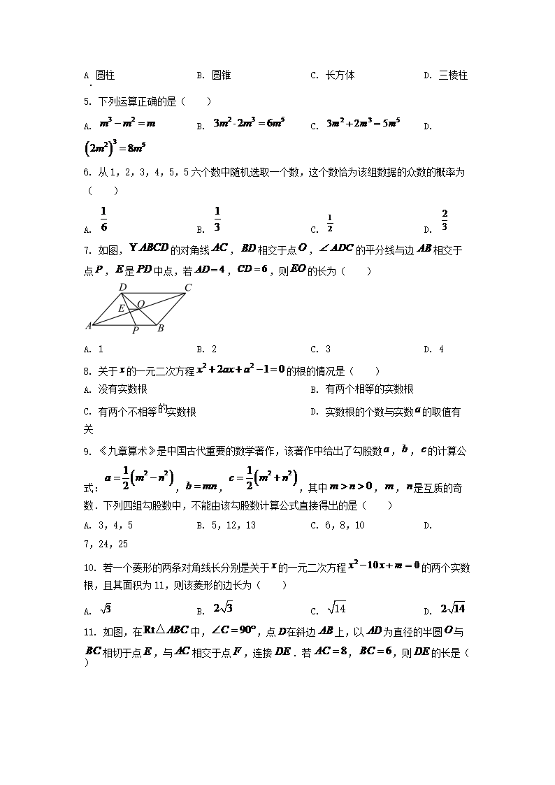 2023年四川泸州中考数学真题及答案(Word版)06-15