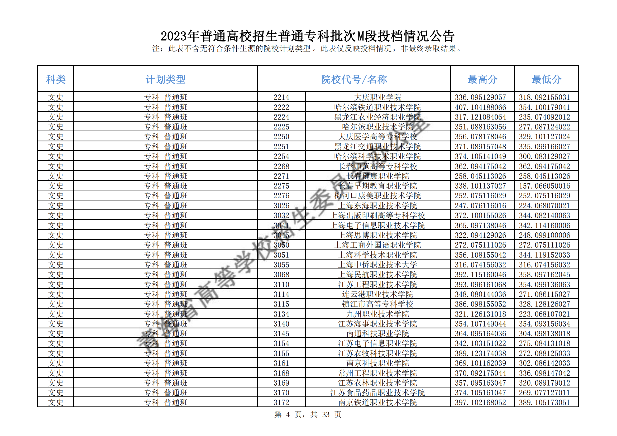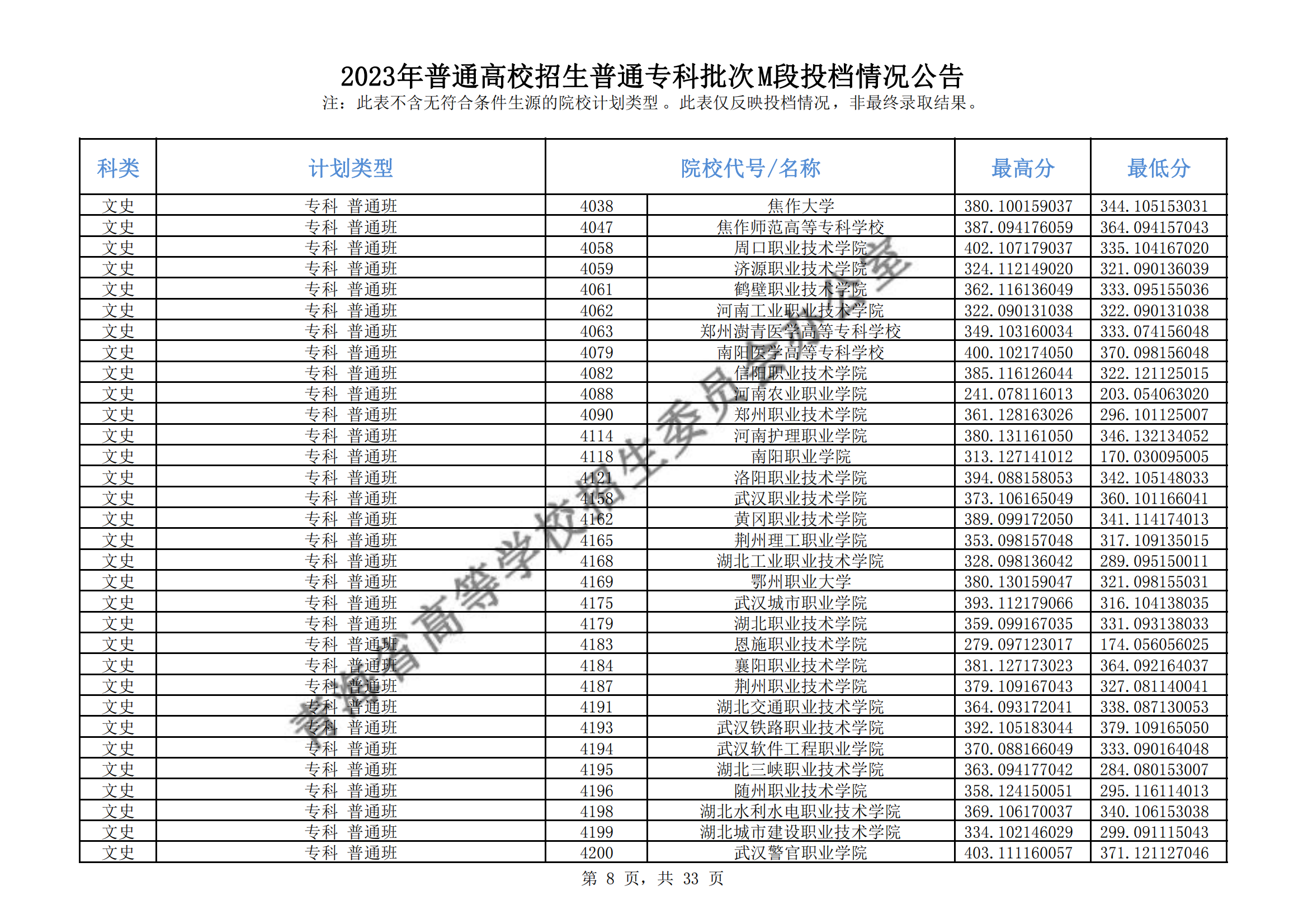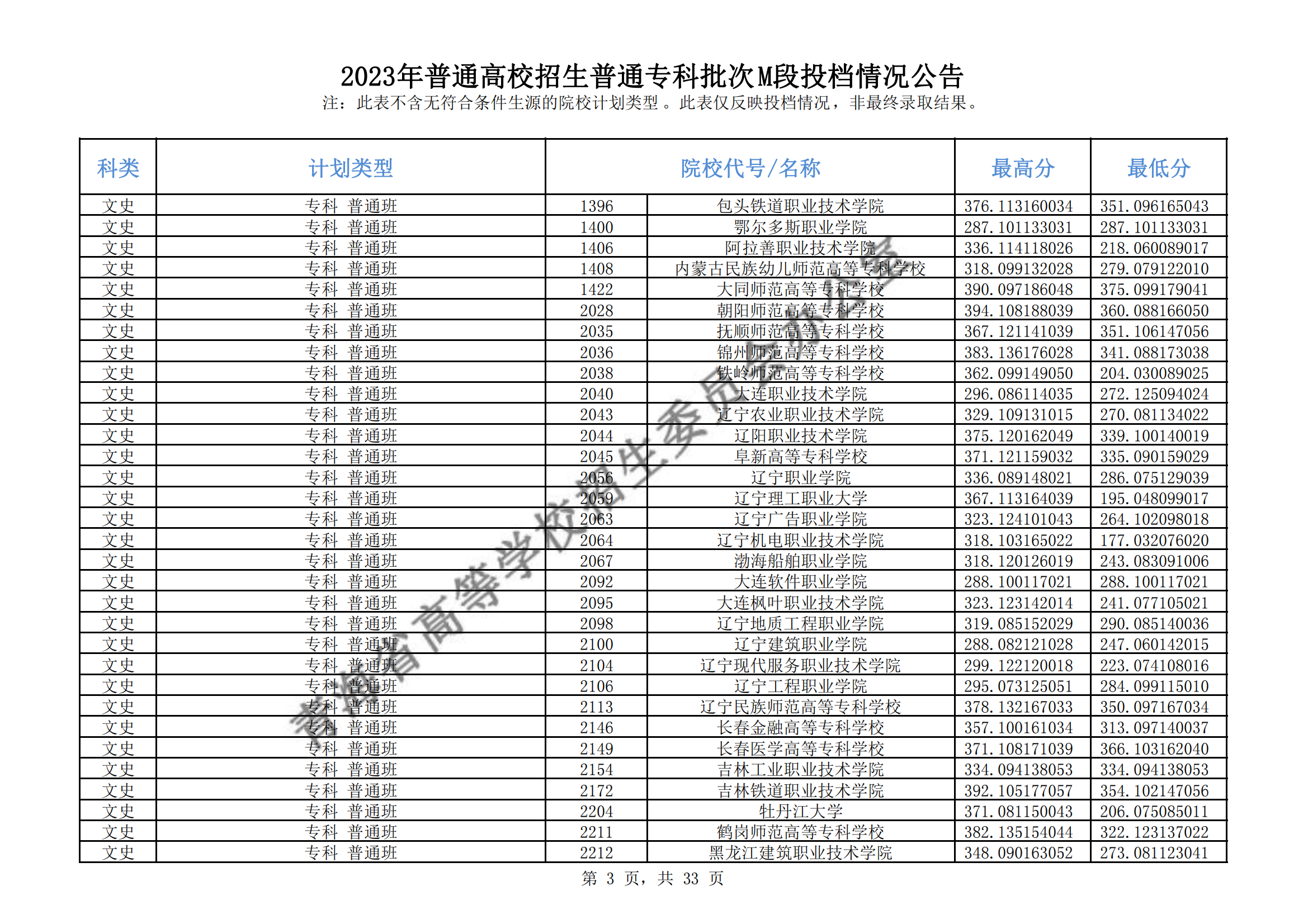 青海省2023年普通高校招生普通专科批次M段投档情况公告08-17