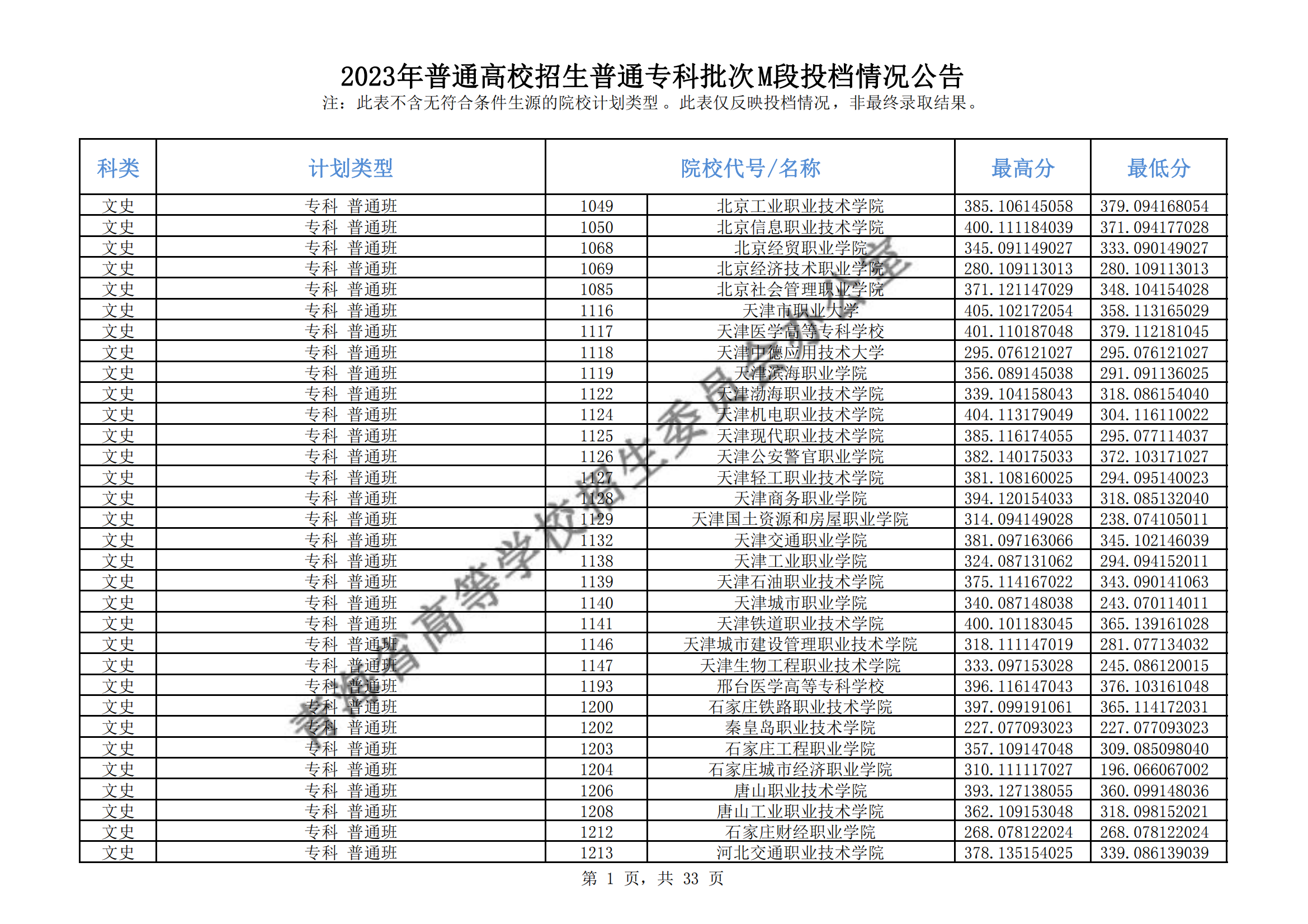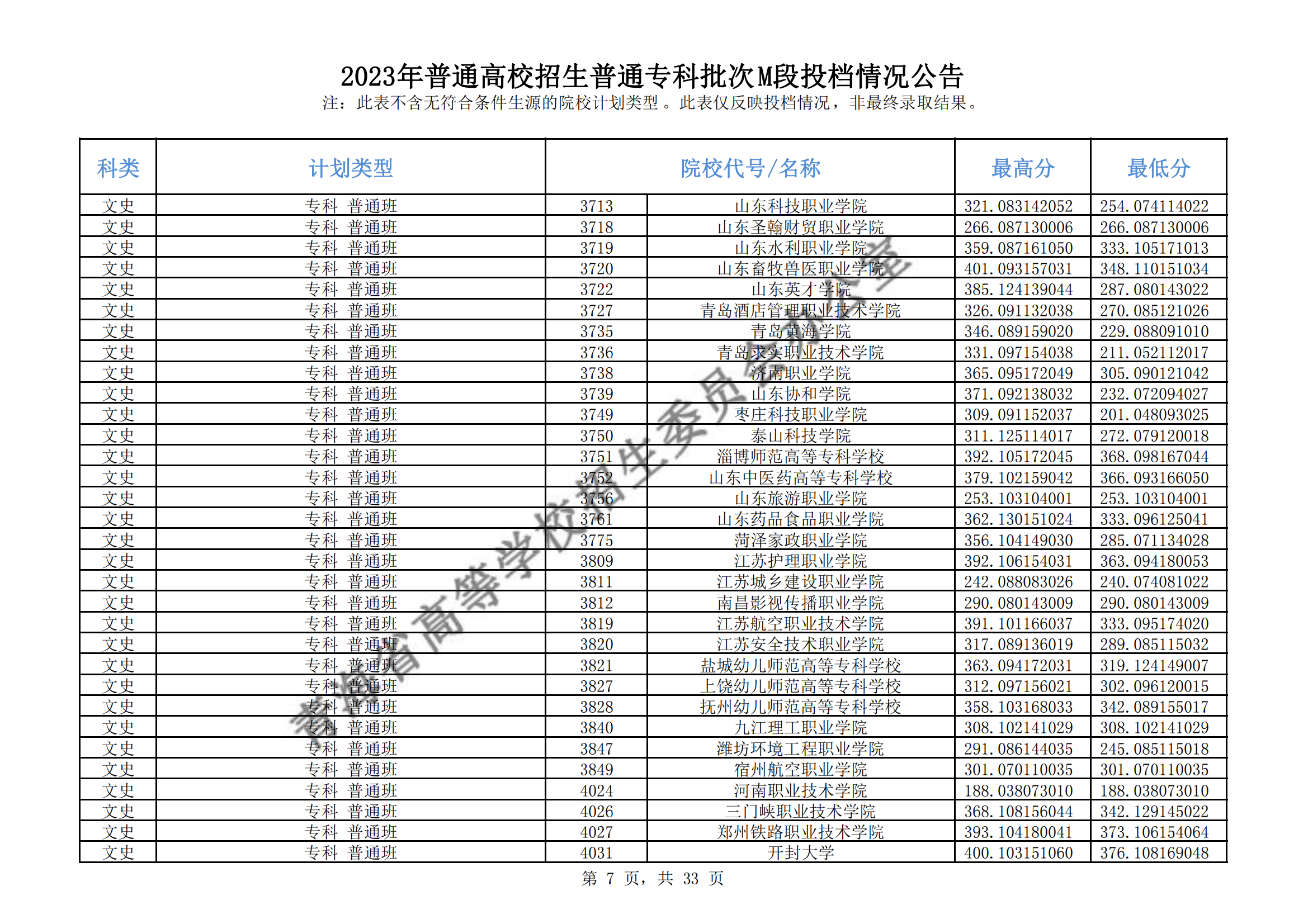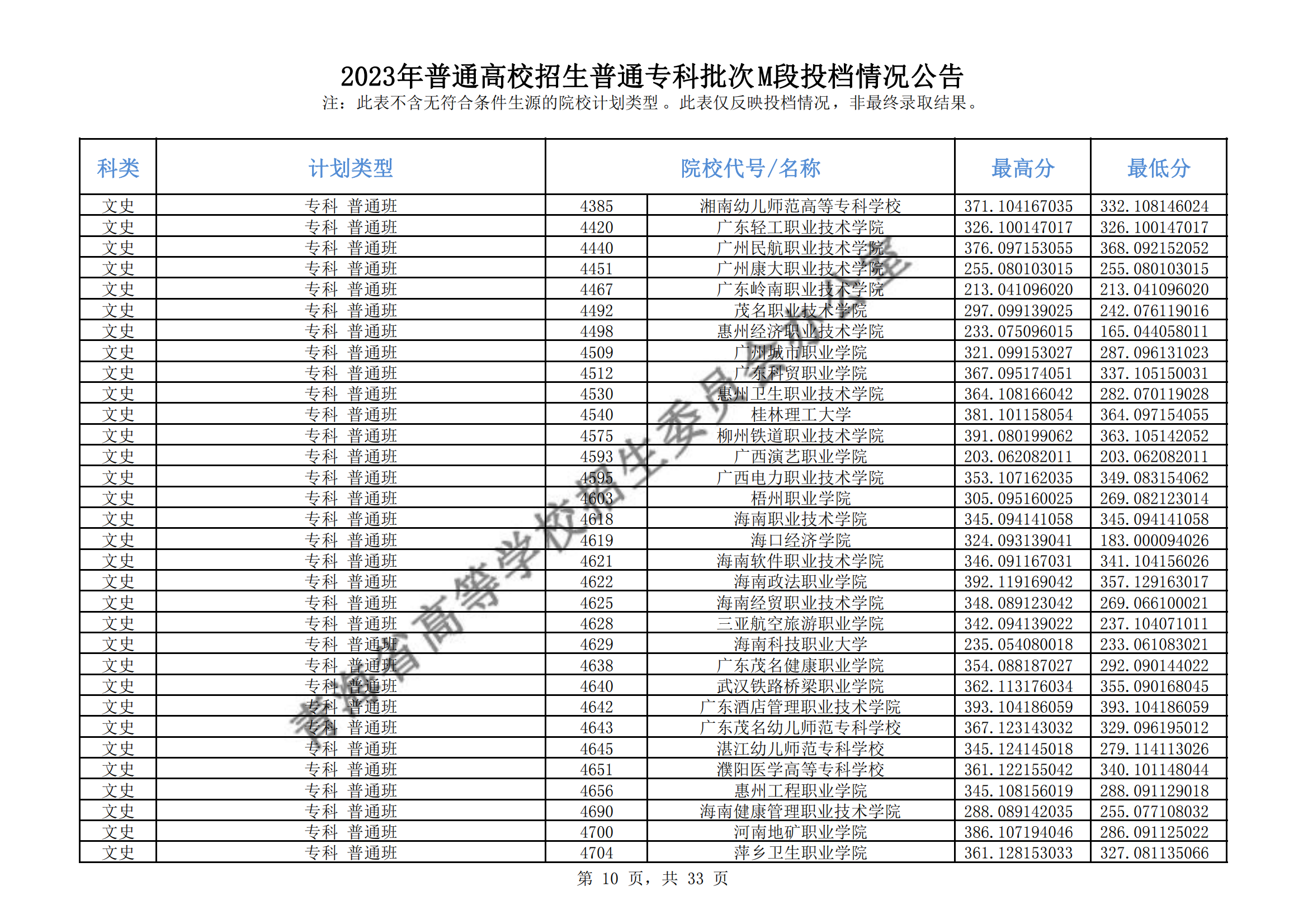 青海省2023年普通高校招生普通专科批次M段投档情况公告08-17