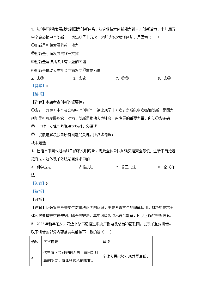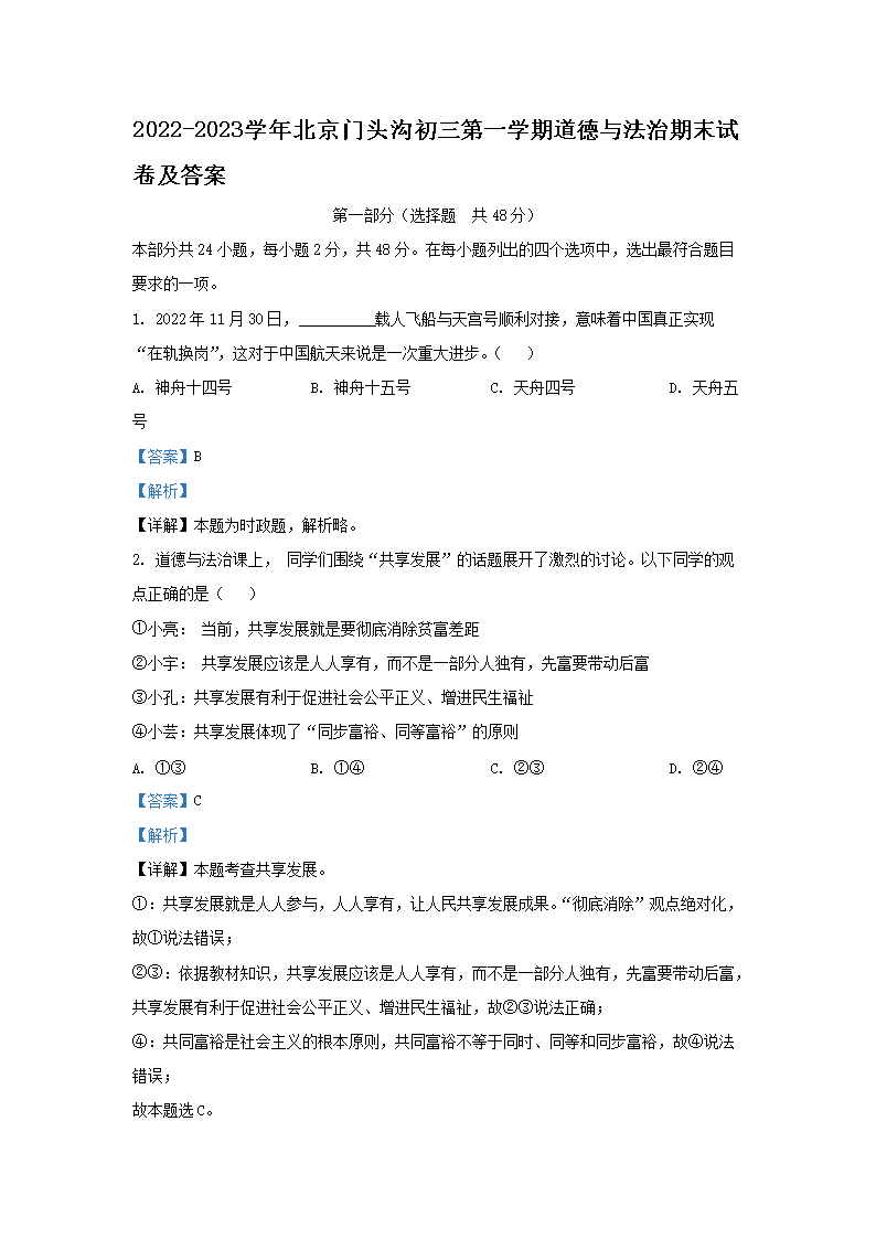 2022-2023学年北京门头沟初三第一学期道德与法治期末试卷及答案(Word版)08-02