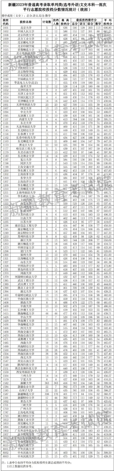 2023年新疆普通高校招生单列类(选考外语)本科一批次投档情况07-28