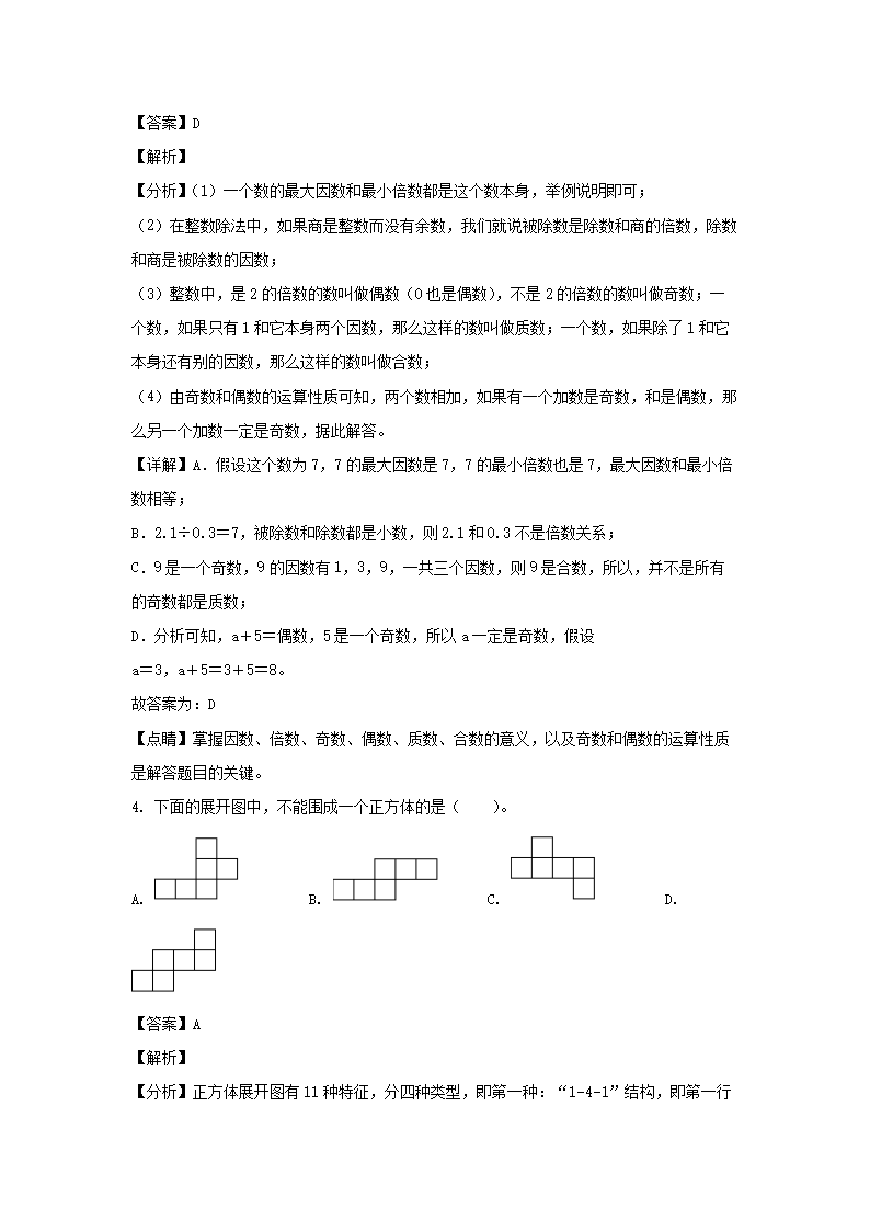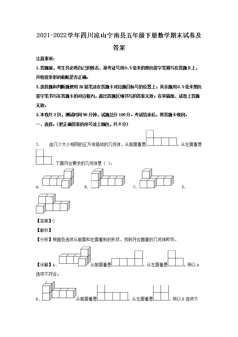 2021-2022学年四川凉山宁南县五年级下册数学期末试卷及答案(Word版)09-27