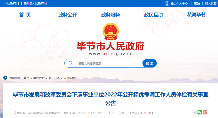 2022贵州省毕节市发展和改革委员会下属事业单位公开择优考调工作人员体检有关事宜公告11-18