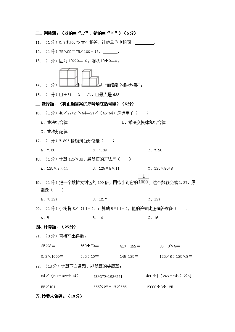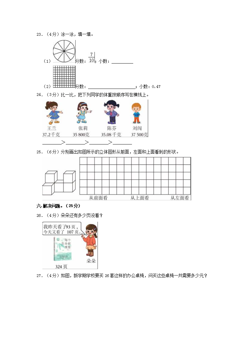 2022-2023学年湖南省怀化市洪江市四年级下学期期中数学真题及答案(Word版)10-12