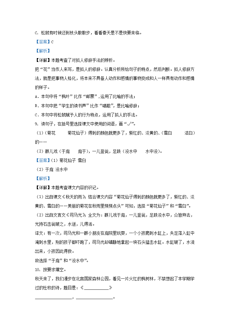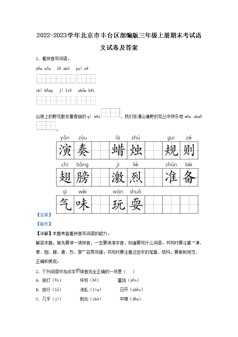 2022-2023学年北京市丰台区部编版三年级上册期末考试语文试卷及答案(Word版)07-01