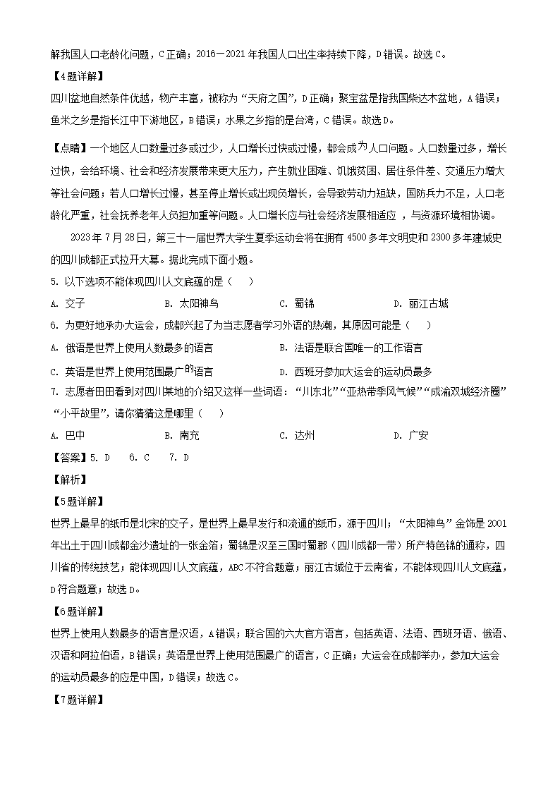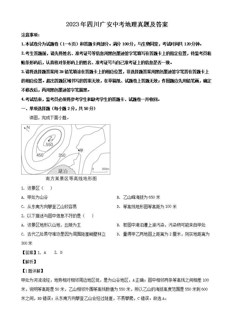 2023年四川广安中考地理真题及答案(Word版)06-26