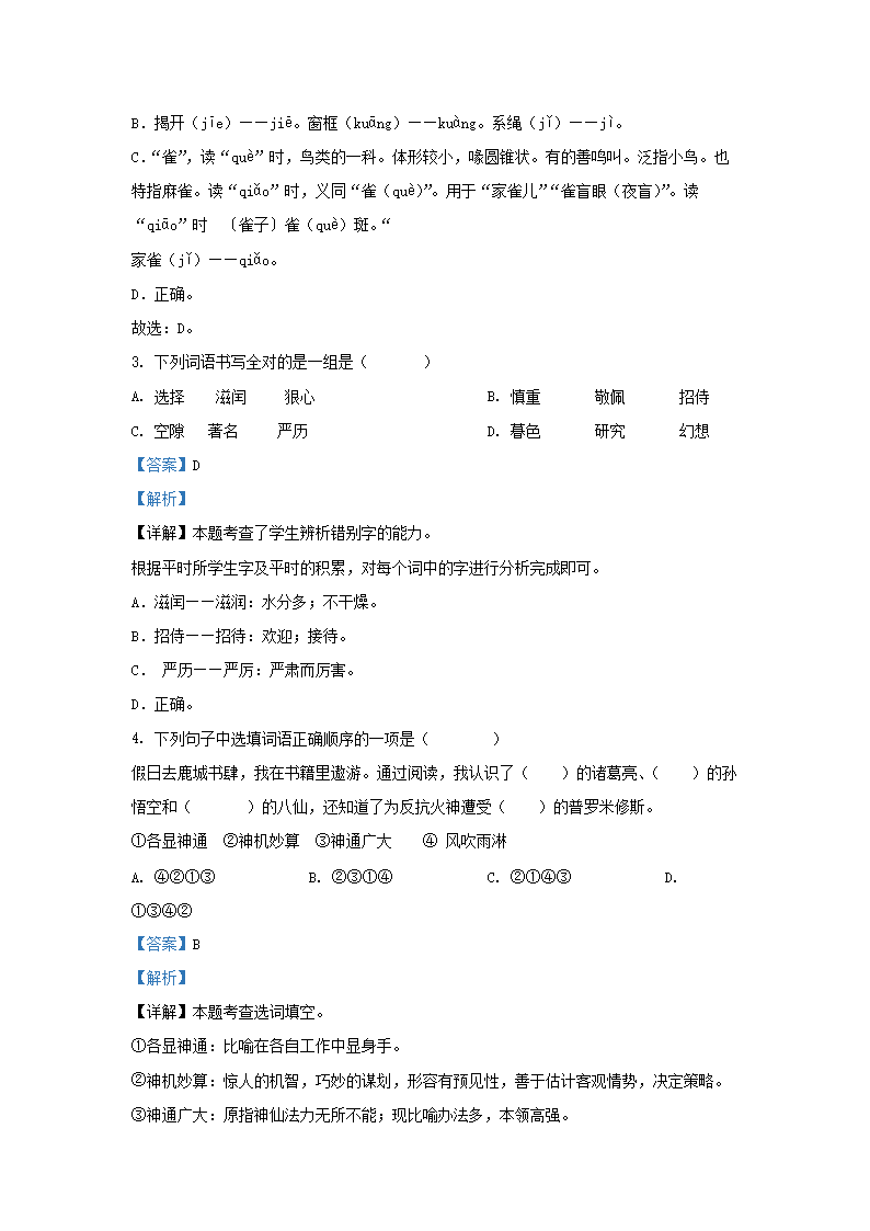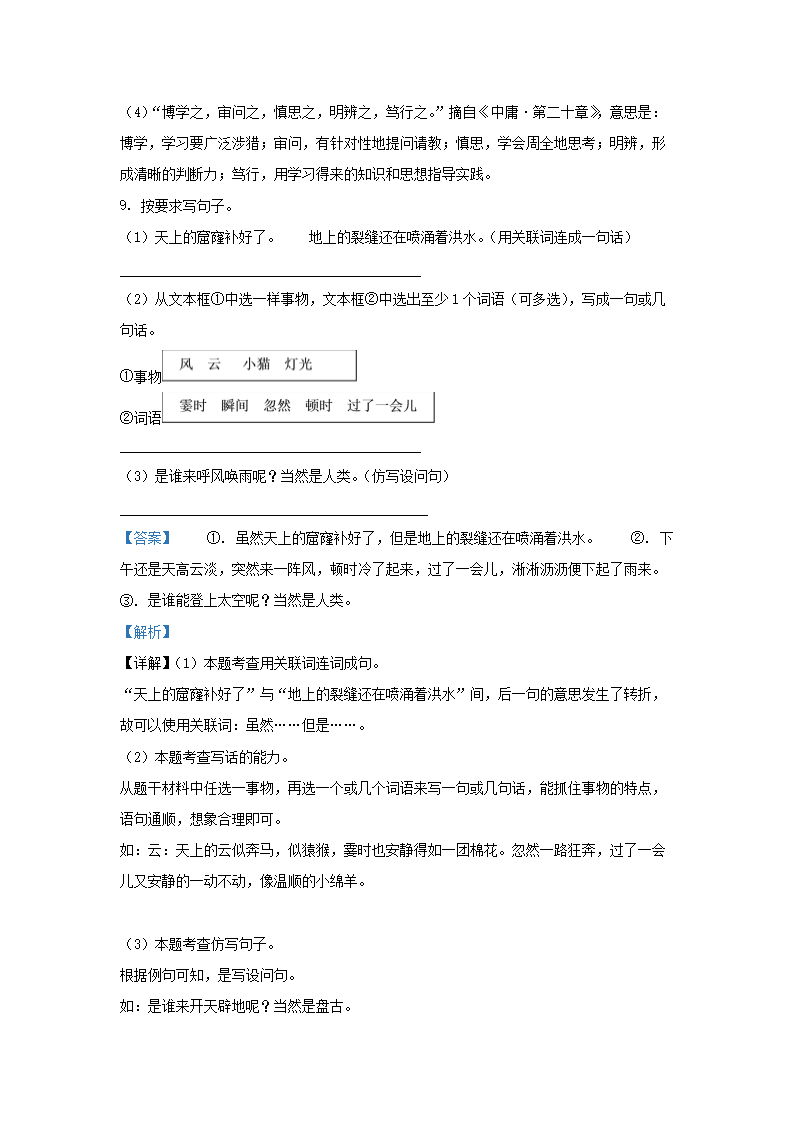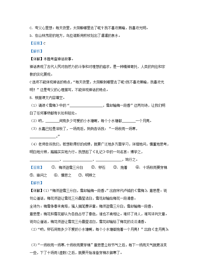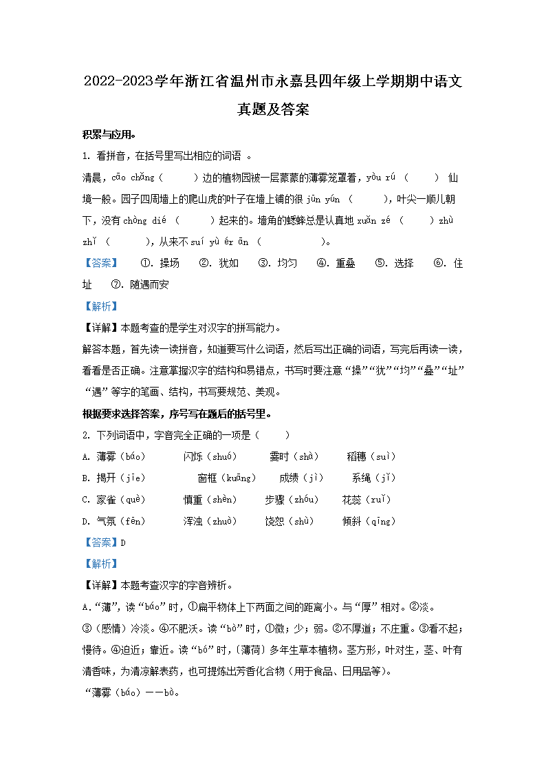 2022-2023学年浙江省温州市永嘉县四年级上学期期中语文真题及答案(Word版)09-28