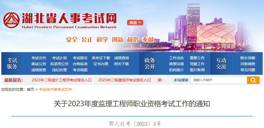 【#监理师考试# 导语】湖北人事考试网发布了《2023年湖北监理工程师职业资格考试考务工作通知》,®文档大全网从公告中了解到,报名时间:3月10日-19日,2023年湖北监理工程师报考条件如下: