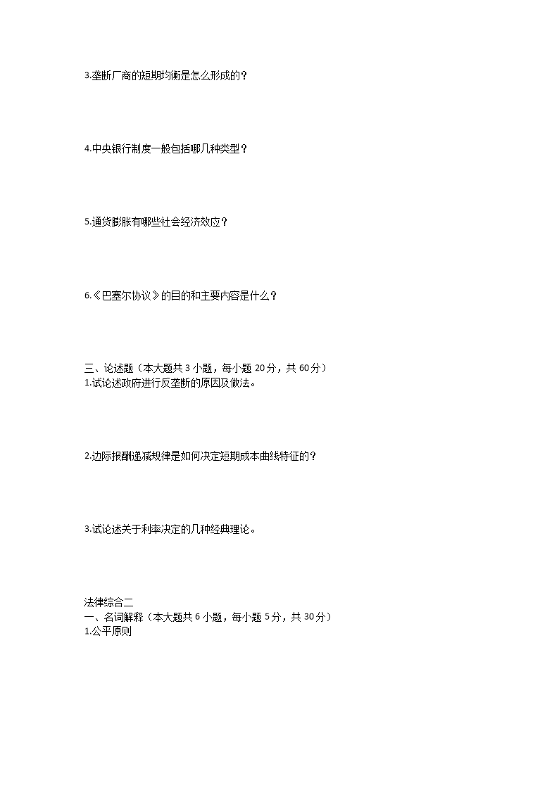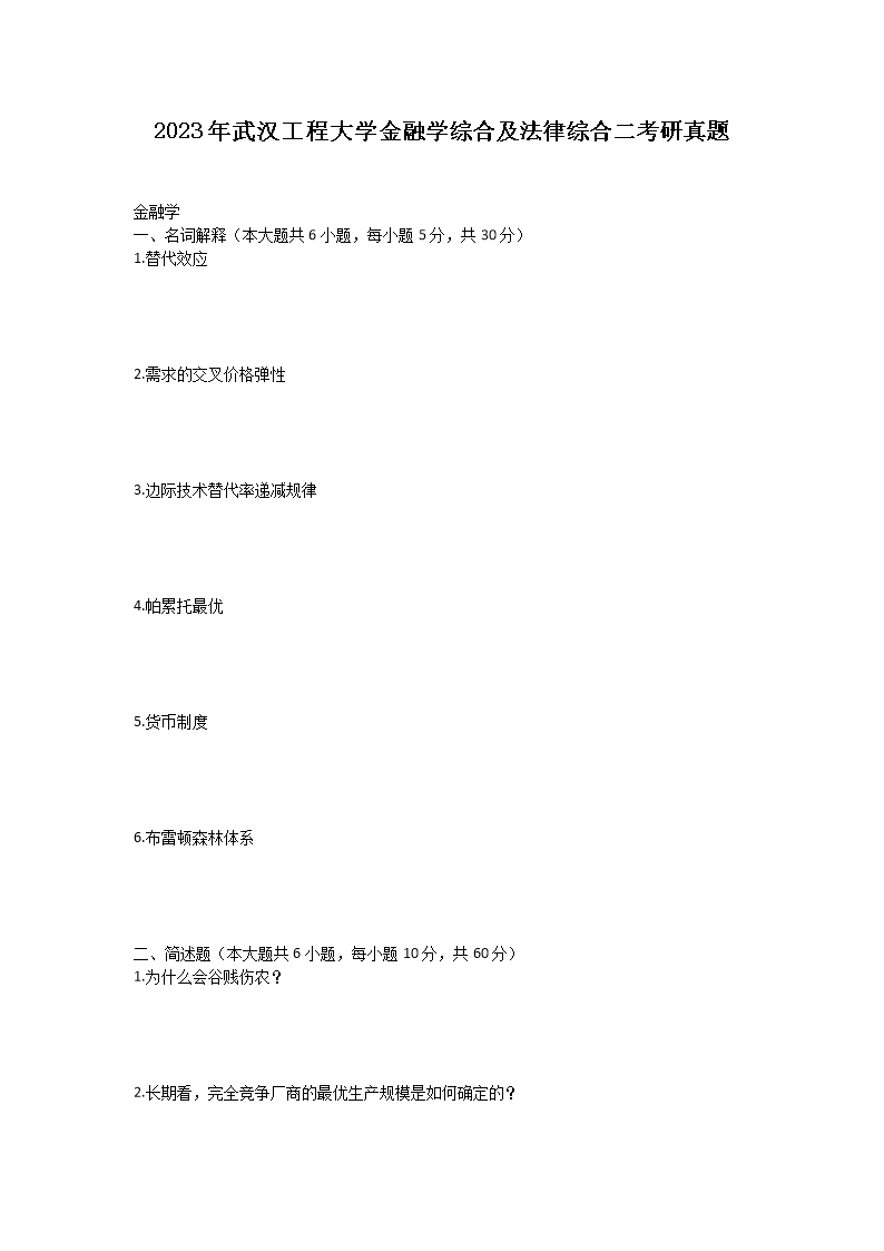 2023年武汉工程大学金融学综合及法律综合二考研真题(Word版)10-12