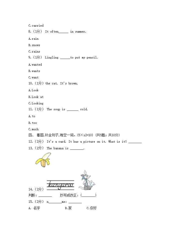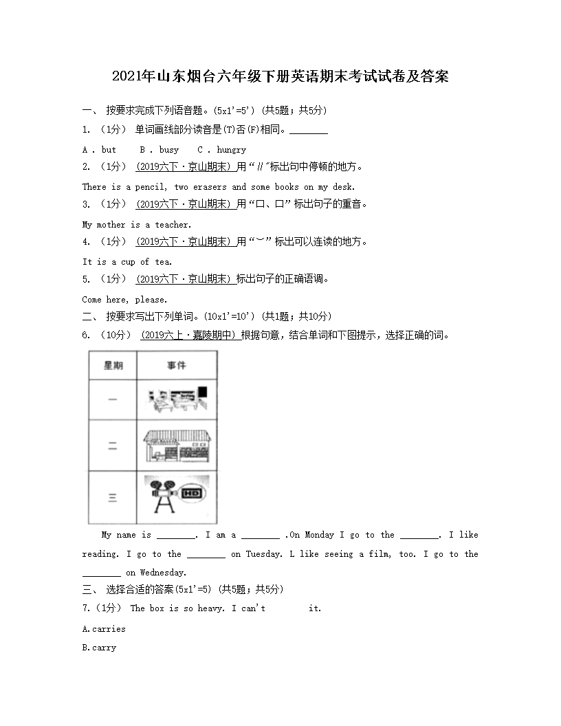 2021年山东烟台六年级下册英语期末考试试卷及答案(Word版)07-01