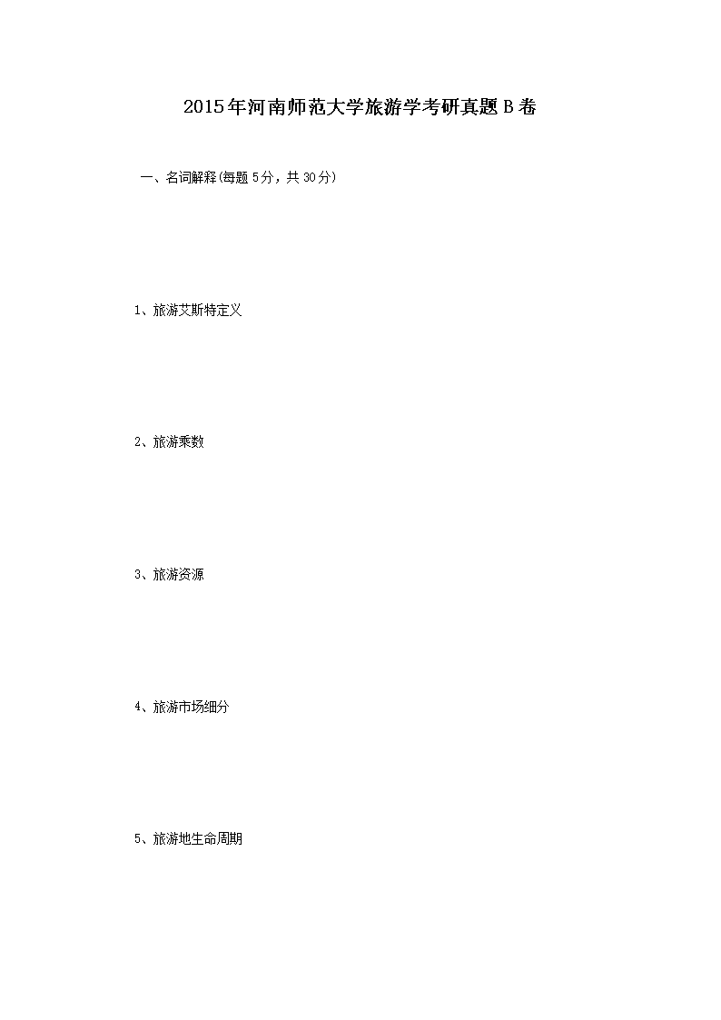 【文档预览】 文档大全网整理发布2015年河南师范大学旅游学考研真题B卷(Word版),前五页预览如下: