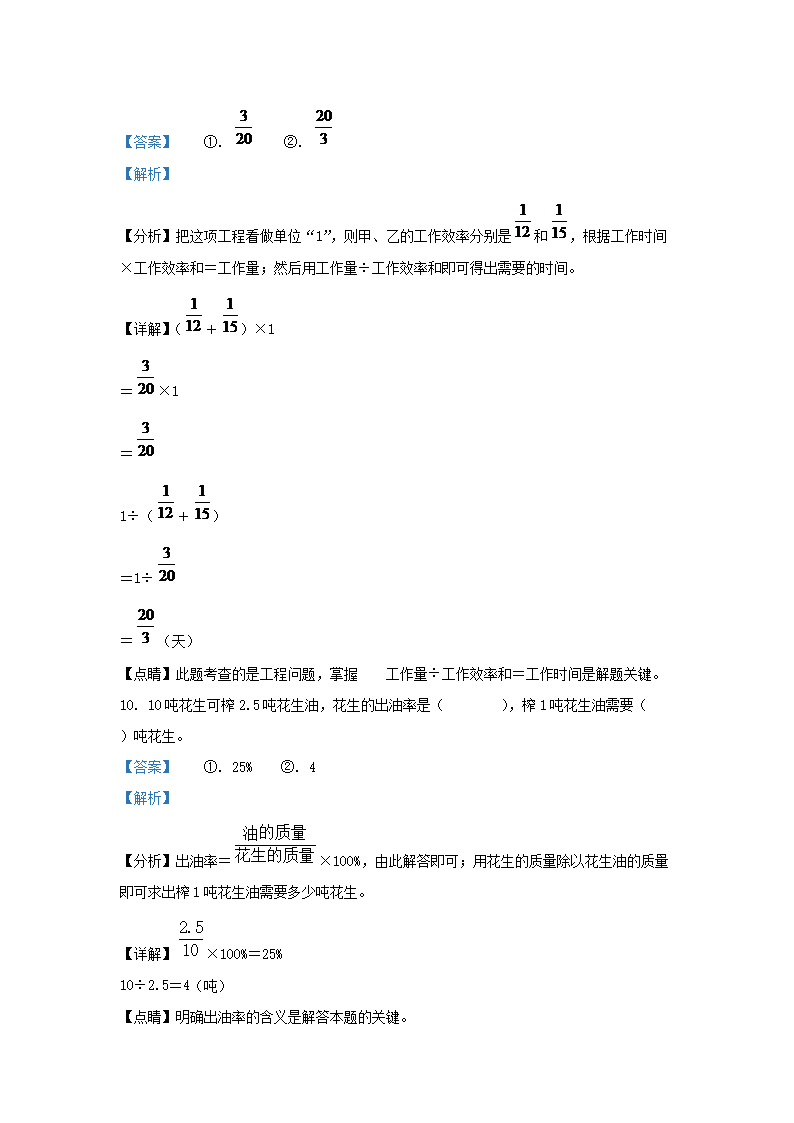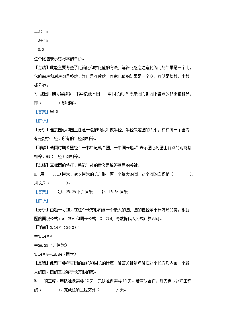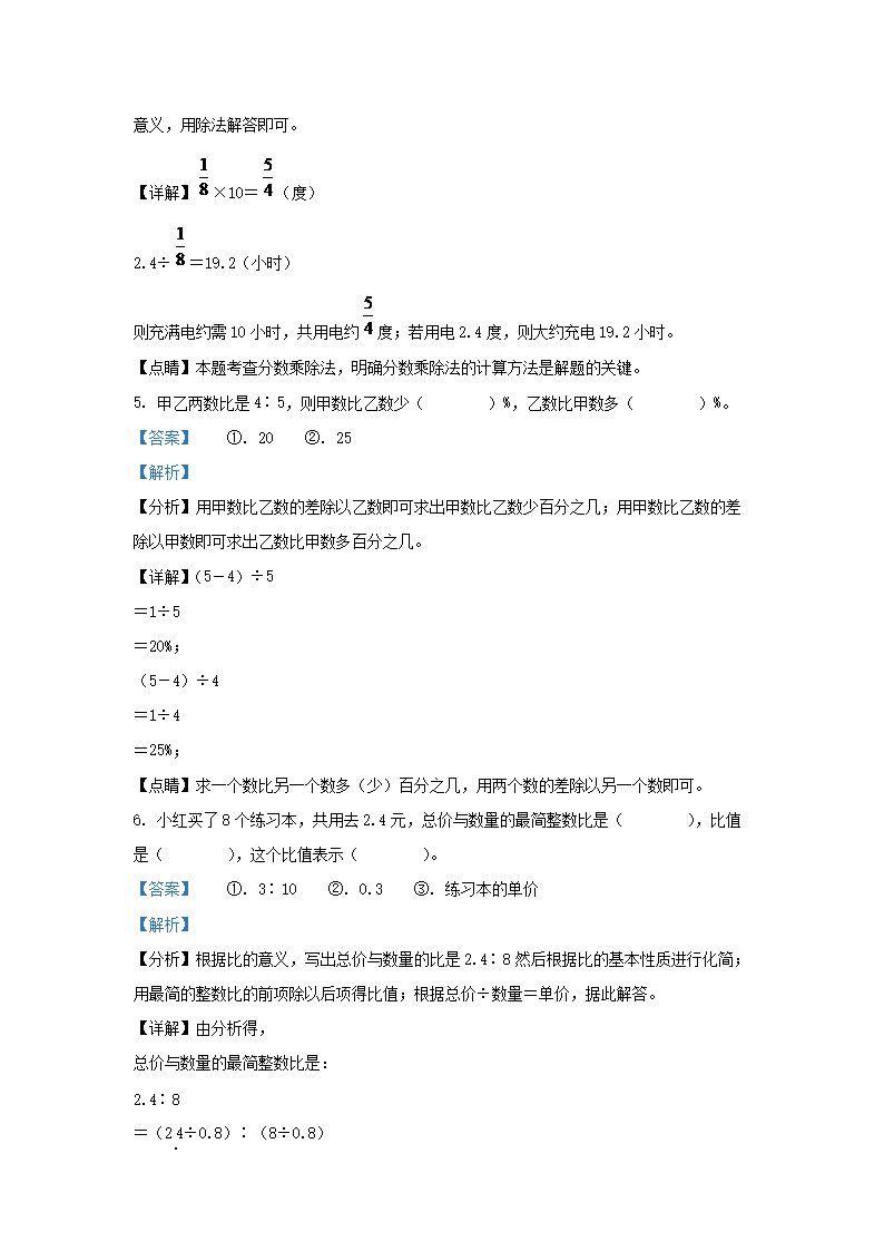 2021-2022年河北保定唐县六年级上册期末数学试卷及答案(Word版)09-23