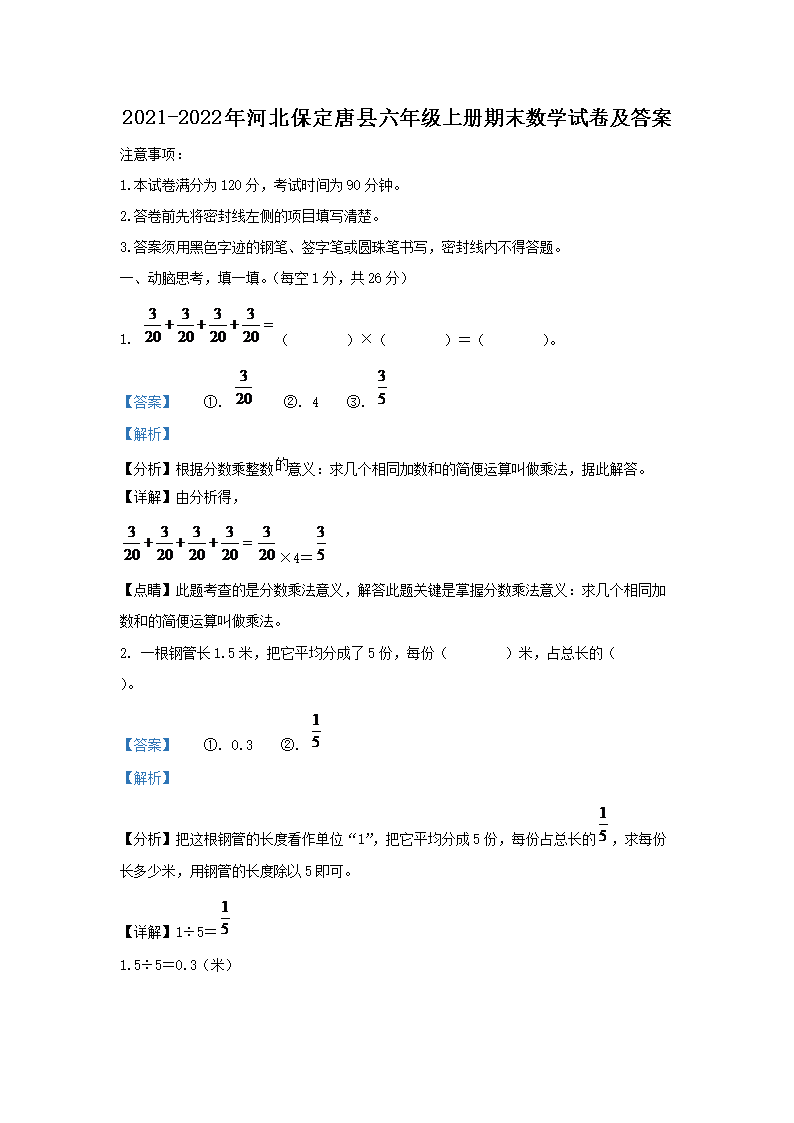 【文档预览】 文档大全网整理发布2021-2022年河北保定唐县六年级上册期末数学试卷及答案(Word版),前五页预览如下:
