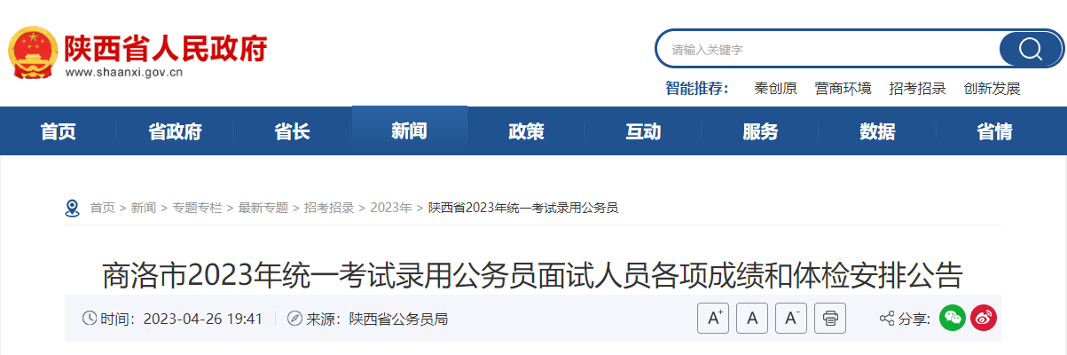2023年陕西商洛市公务员面试人员各项成绩和体检安排公告04-28
