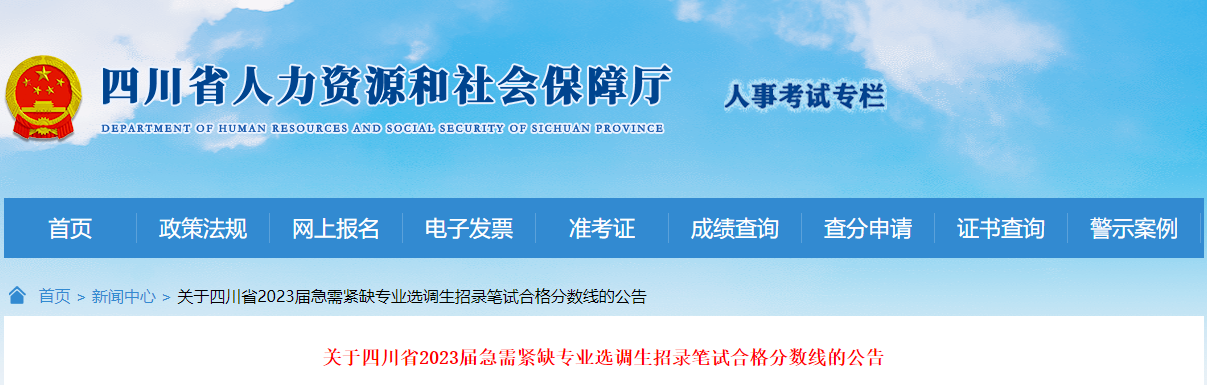原文标题:关于四川省2023届急需紧缺专业选调生招录笔试合格分数线的公告