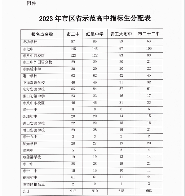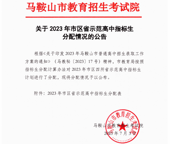 2023年安徽马鞍山市区省示范高中2023年指标生分配情况的公告07-07