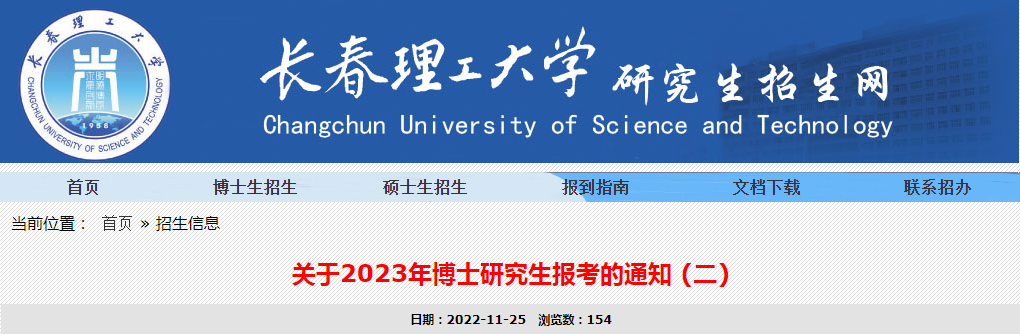 吉林:长春理工大学2023年博士研究生报考通知(二)11-26