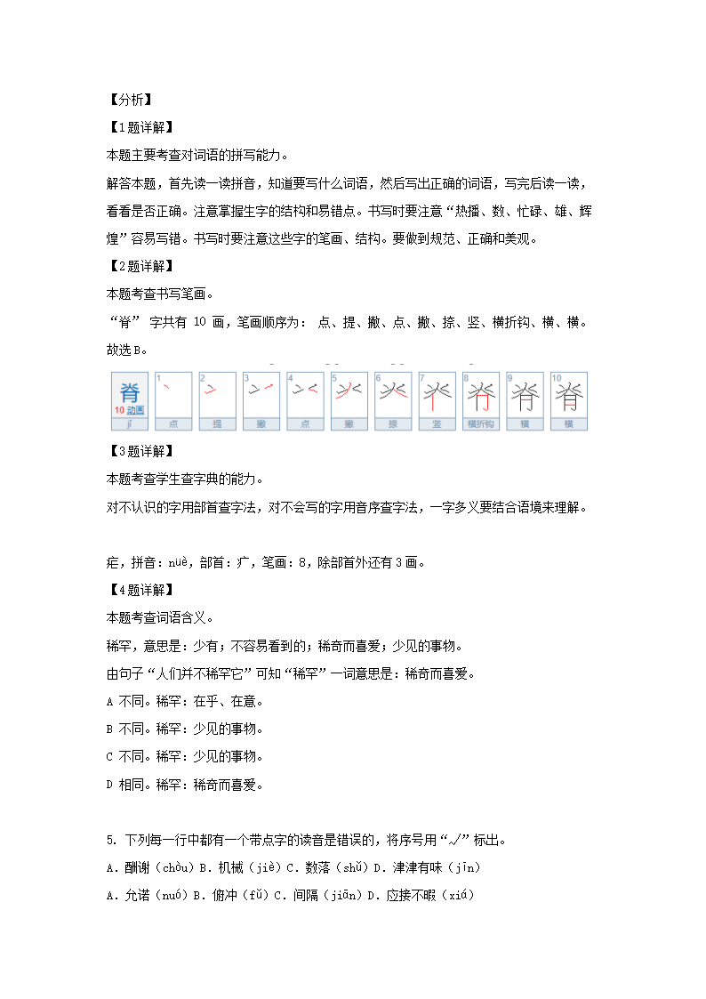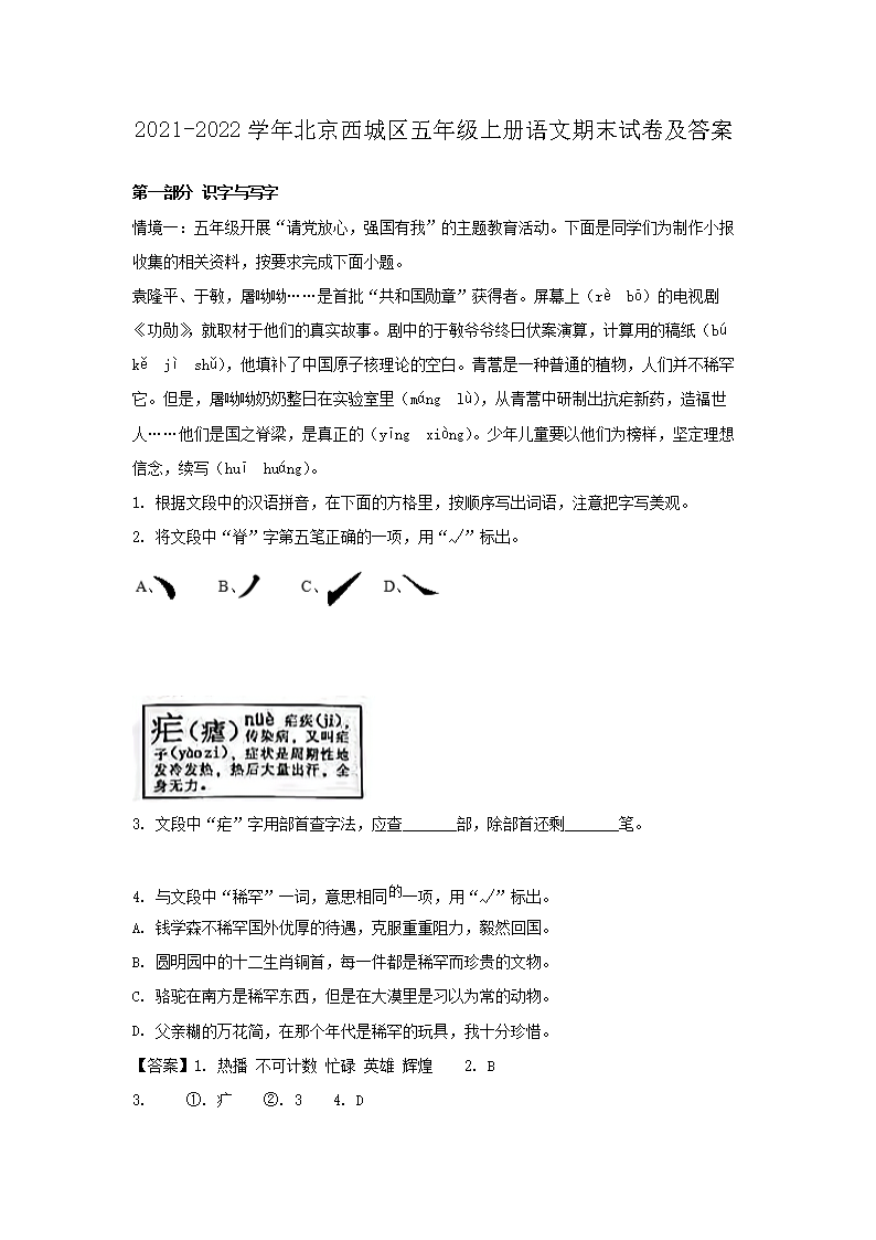 2021-2022学年北京西城区五年级上册语文期末试卷及答案(Word版)06-21