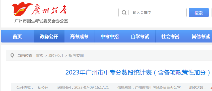 2023年广东广州中考分数段统计表(含各项政策性加分)公布07-11