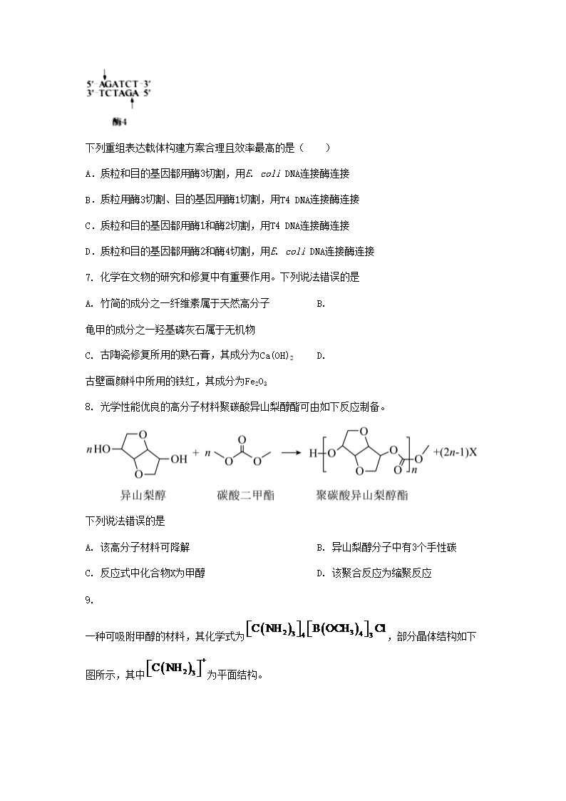 2023年云南高考理科综合真题及答案(Word版)06-16