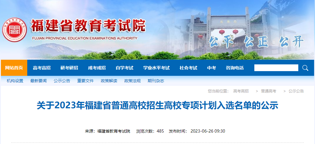 2023年福建省普通高校招生高校专项计划入选名单的公示06-29
