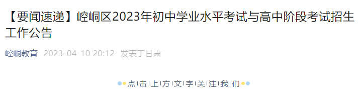 原文标题:崆峒区2023年初中学业水平考试与高中阶段考试招生工作公告