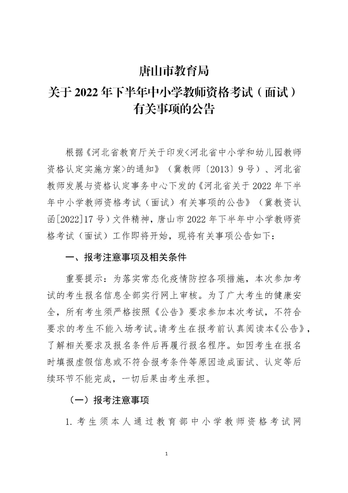 2022下半年河北唐山教师资格考试(面试)有关事项的公告【12月10日起开始审核】12-09