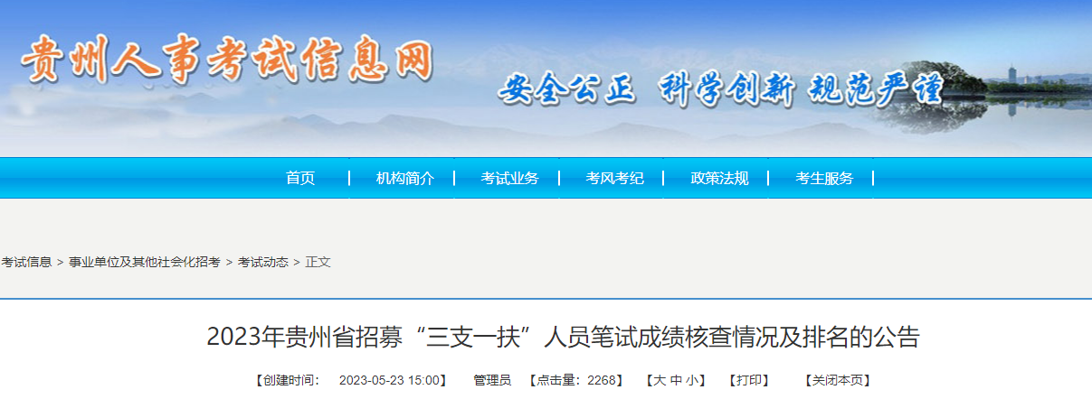 2023年贵州三支一扶笔试成绩核查情况及排名(已公布)05-24