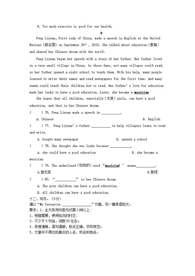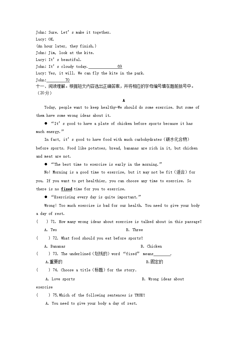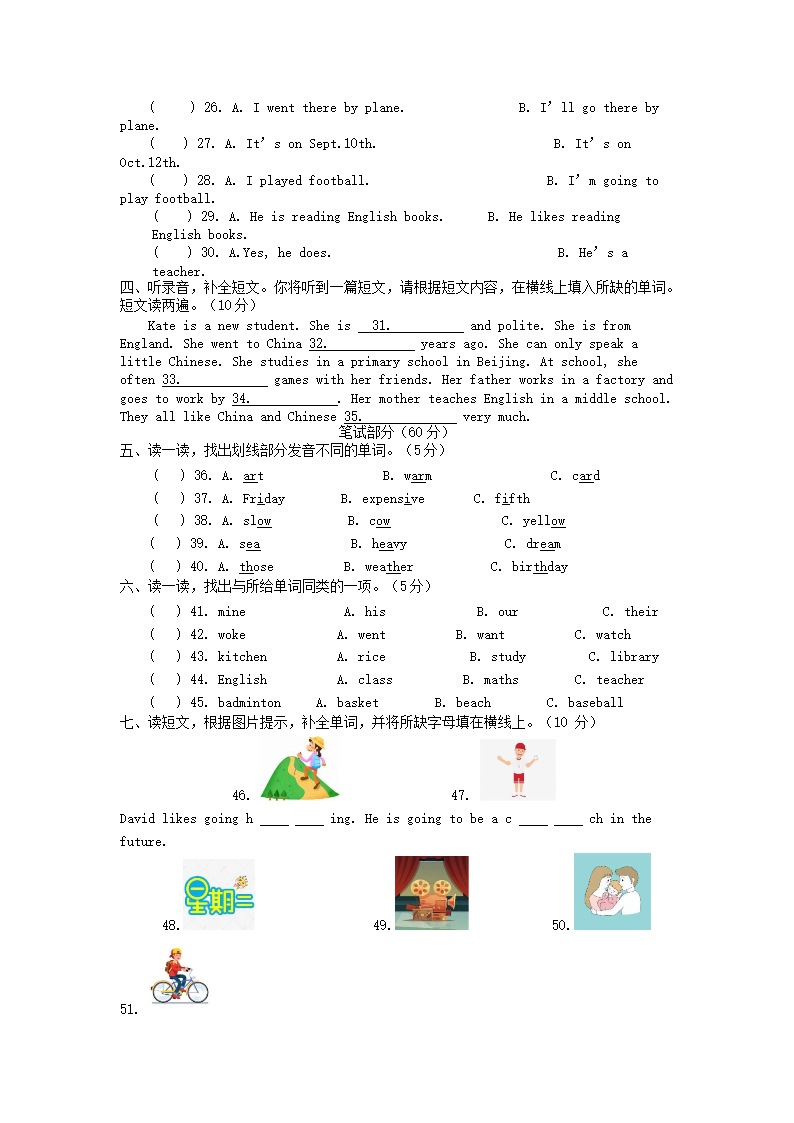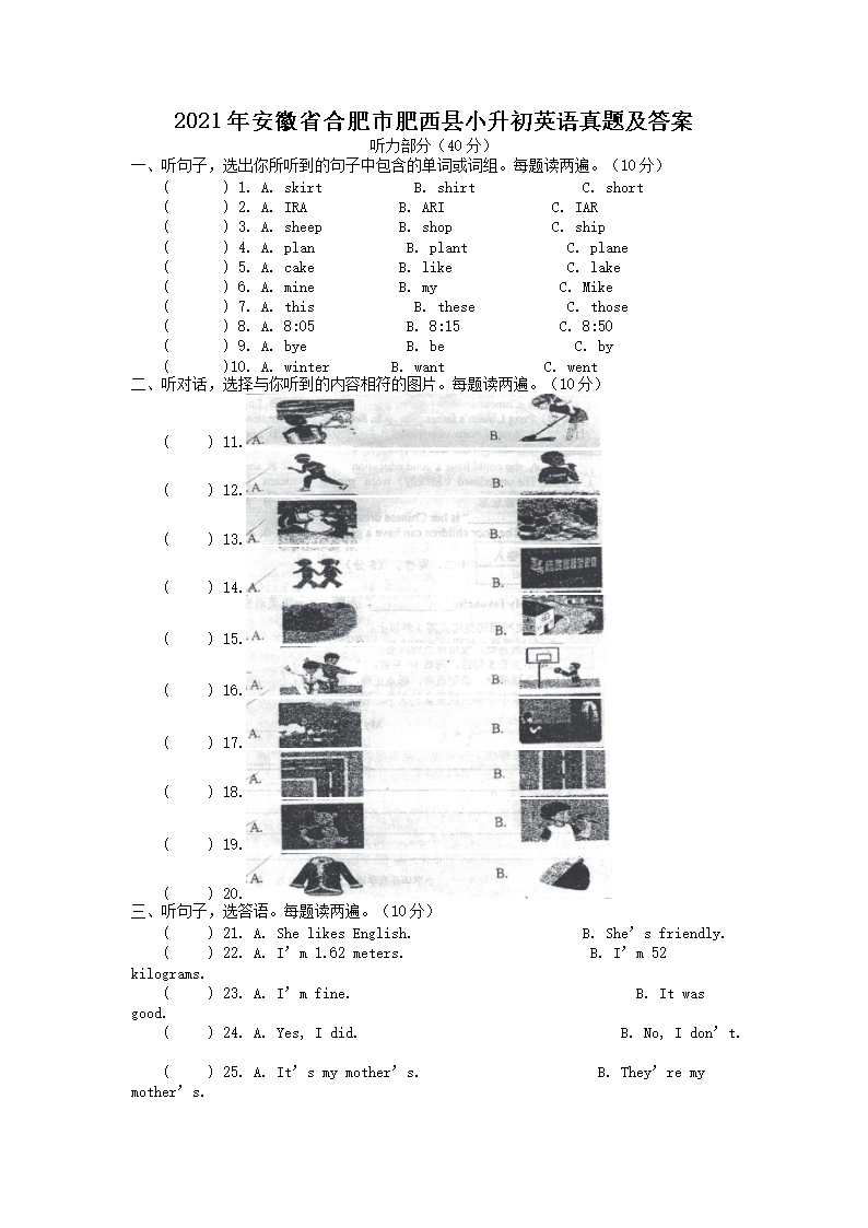 2021年安徽省合肥市肥西县小升初英语真题及答案(Word版)09-27