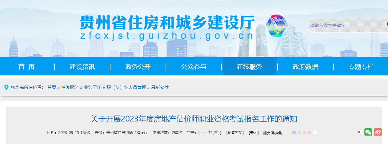 【#房地产评估师考试# #2023年贵州房地产估价师报考条件#】®文档大全网从贵州省住房和城乡住建厅了解到,《2023年贵州房地产估价师职业资格考试报名工作通知》现已公布,符合条件的考生可在9月19日-25日进行网上报名,2023年贵州房地产估价师报考条件如下: