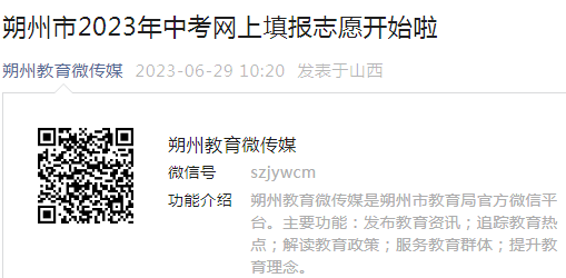 点击进入:山西朔州2023年中考志愿填报入口
