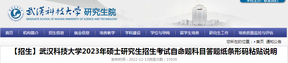 武汉科技大学(10488)招生单位2023年硕士研究生招生自命题科目考试,由考生自行粘贴答题纸条形码,为帮助考生提前了解条形码粘贴要求,制作了答题纸条形码粘贴说明,请报考我校的考生务必认真仔细阅读。