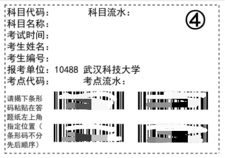 1、报考武汉科技大学的考生,除901快题设计(3小时)、902美术专题创作(3小时)、903综合设计(3小时)等设计类科目外,其他自命题科目均有条形码,条形码在自命题信封封面。条形码不分先后顺序,请依次揭下粘贴在自命题答题纸上面。