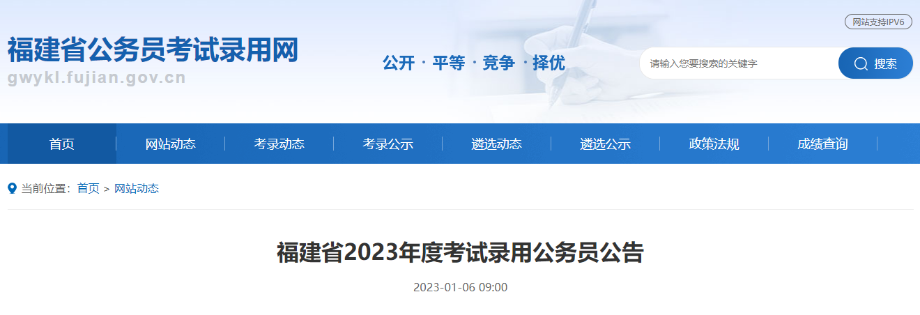 【#公务员考试# 导语】©文档大全网从福建省公务员考试录用网获悉,2023年福建考试录用公务员报考工作现已开始,报名时间:1月9日-13日,考试时间:2月25日-26日,更多事宜请参考阅读《考试公告》,官方公告原文如下: