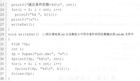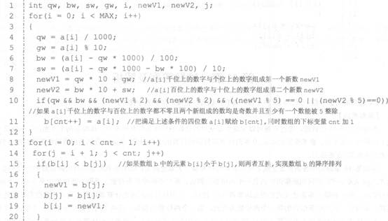 本题类似第27套试题,通过审题可以发现主要是对四位数的筛选条件有所不同,体现在两个方面:①分解后重新组合成两位数的方式不同,参考答案的第8、9条语句重新指定两位数的组合方式;②新组台的两位数的奇数的判断及整除判断,参考答案的第10条语句。
