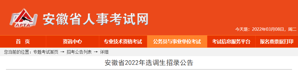 2022年安徽省选调生招录公告05-03