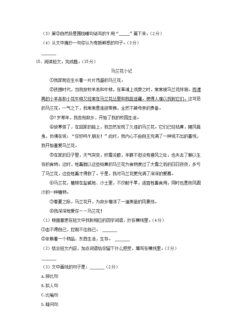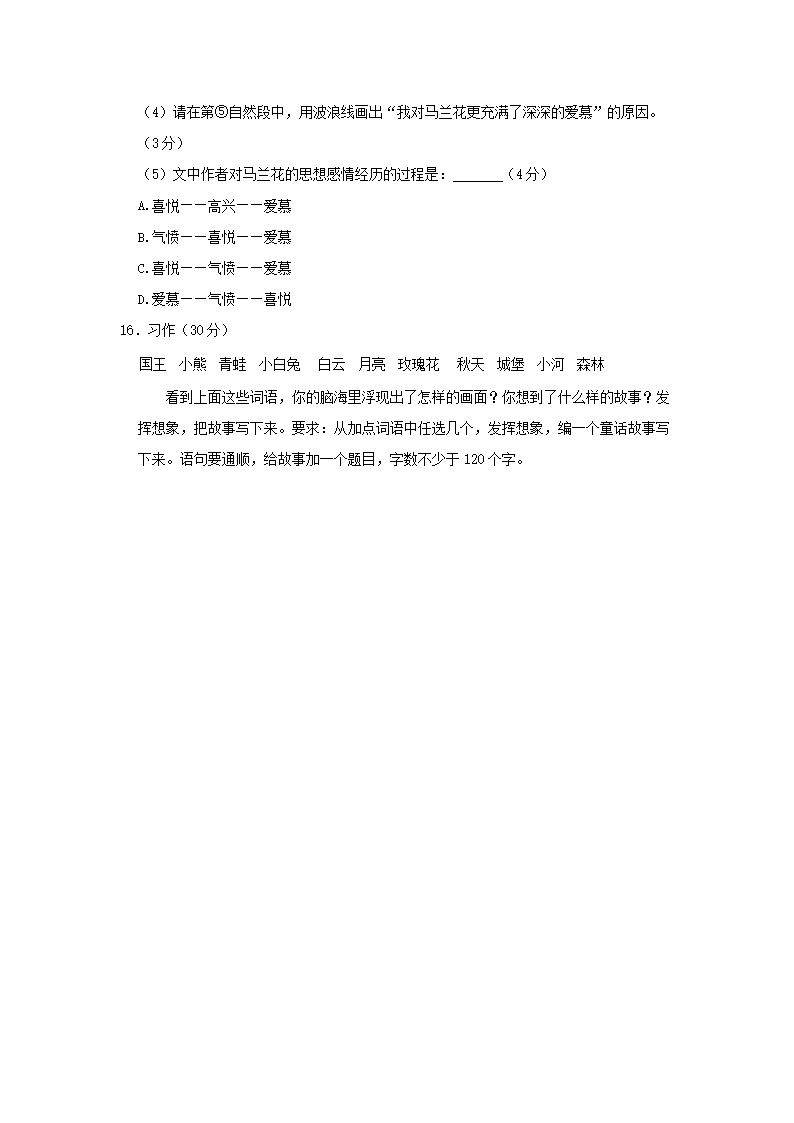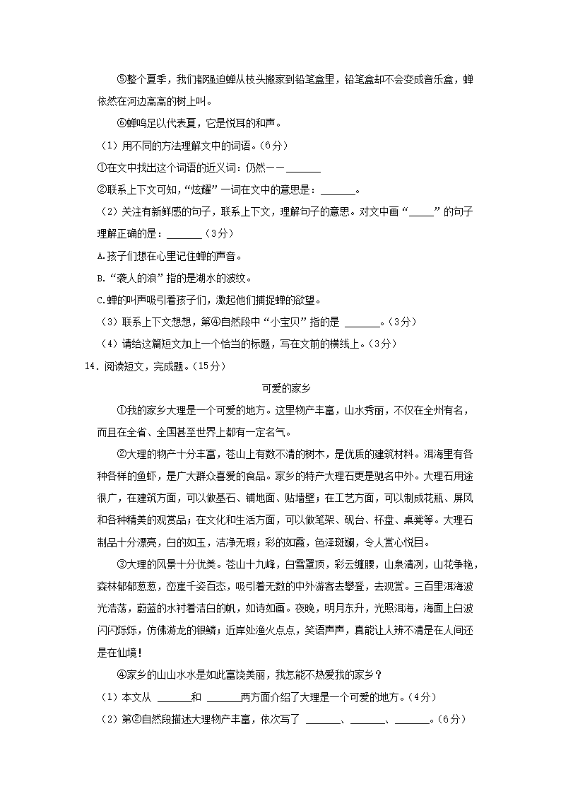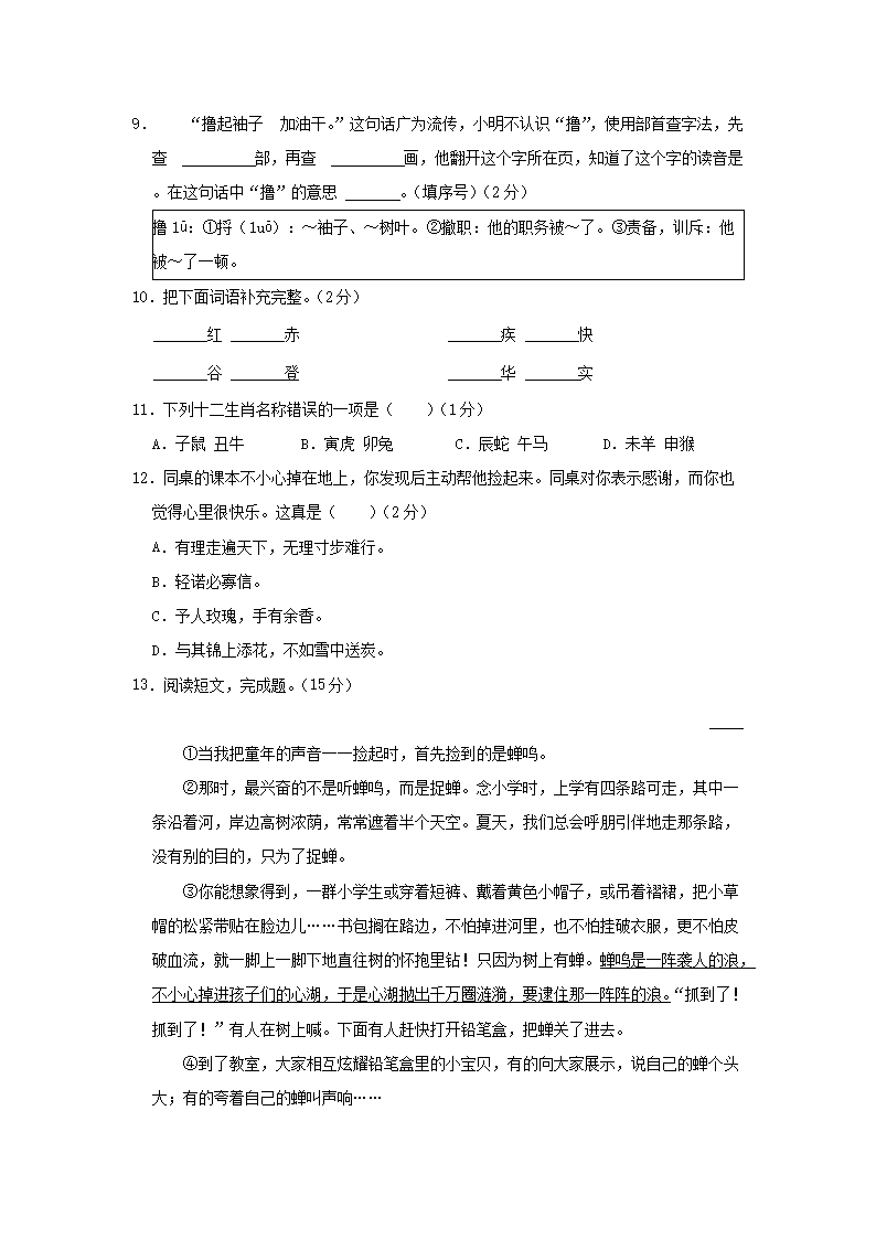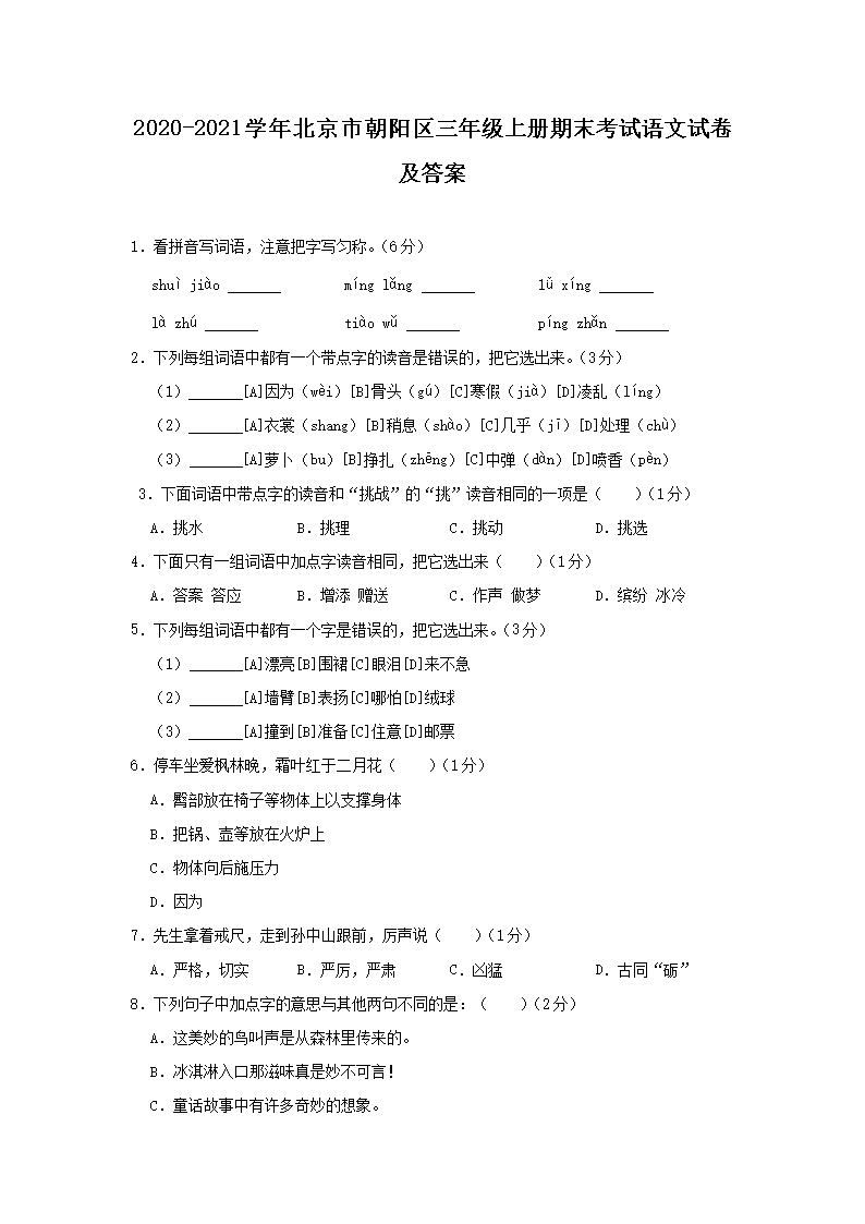 2020-2021学年北京市朝阳区三年级上册期末考试语文试卷及答案(Word版)06-29