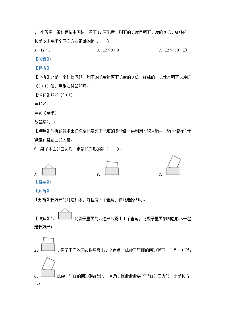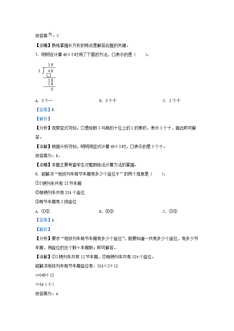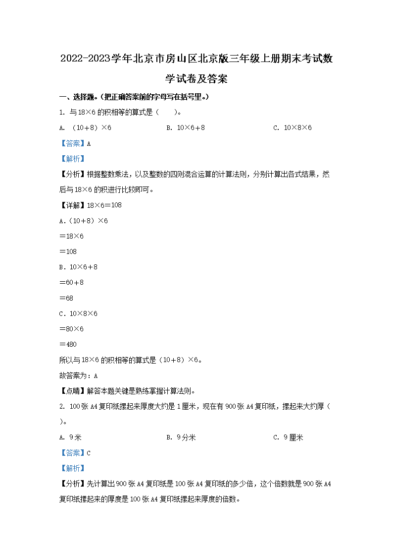 2022-2023学年北京市房山区北京版三年级上册期末考试数学试卷及答案(Word版)06-26