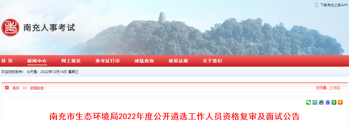 2022年四川南充市生态环境局遴选公务员资格复审时间:12月19日12-15