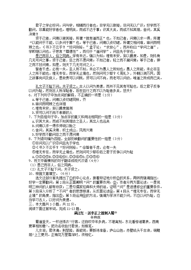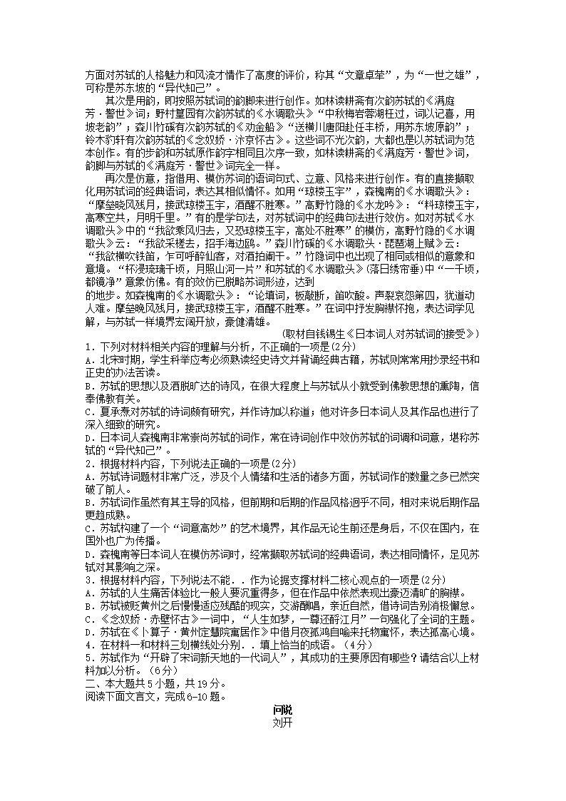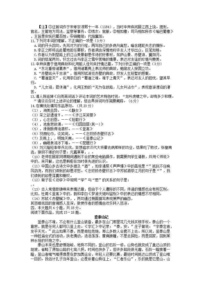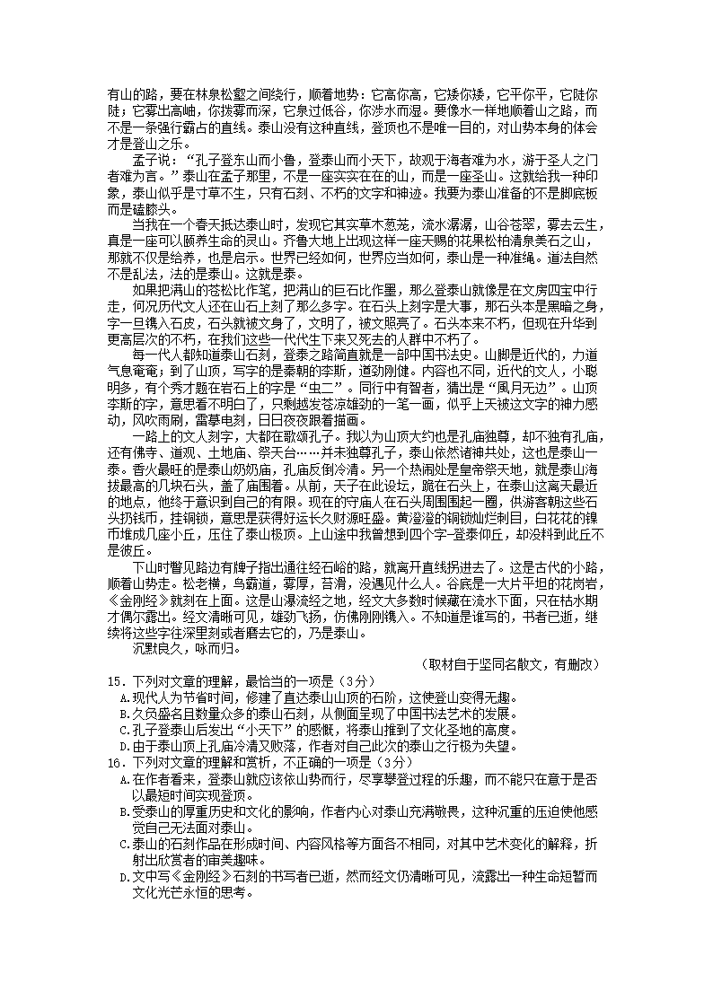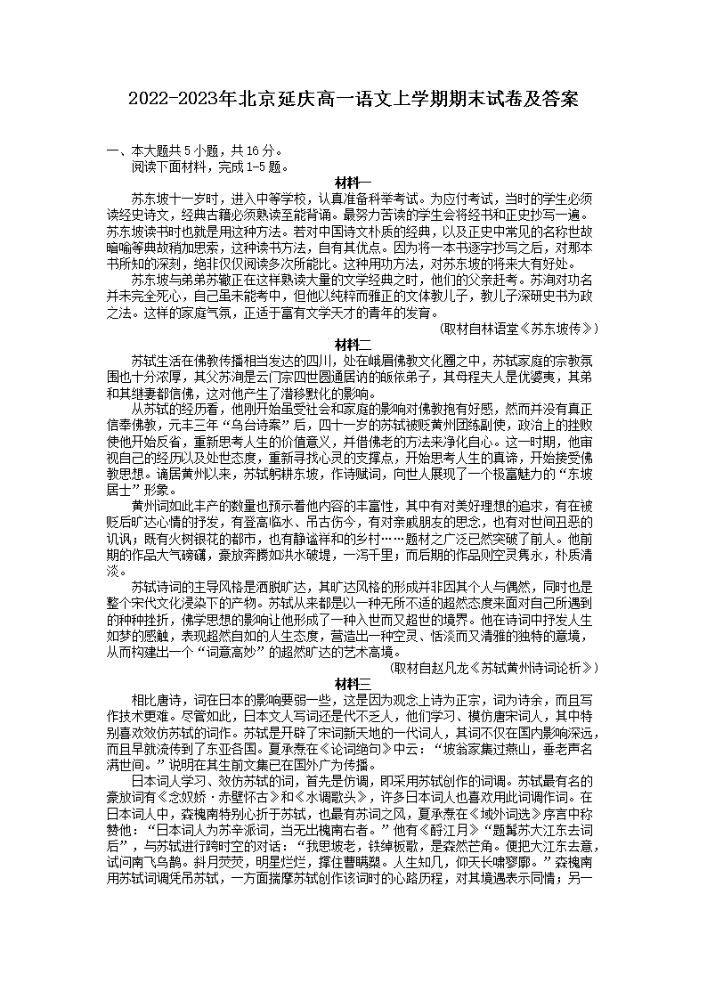 2022-2023年北京延庆高一语文上学期期末试卷及答案(Word版)08-01