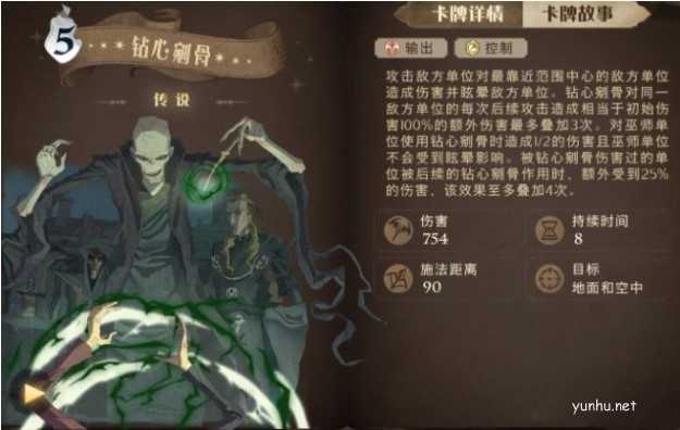 钻心剜骨为主要攻击卡牌,5级时伤害为754点;