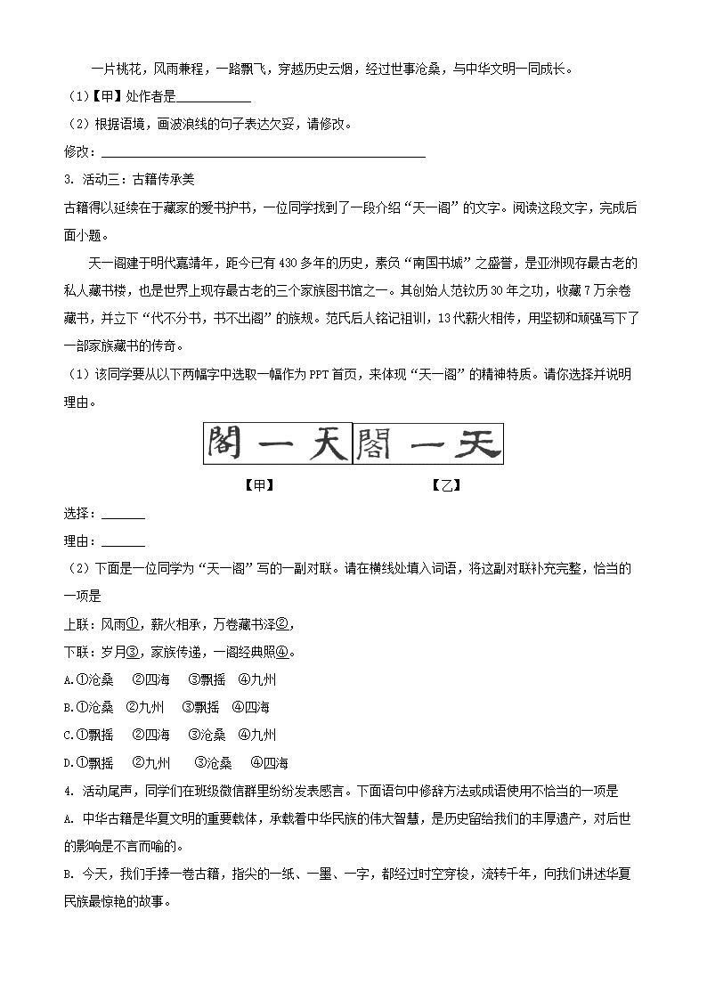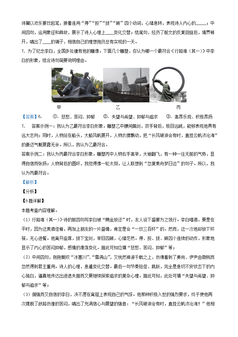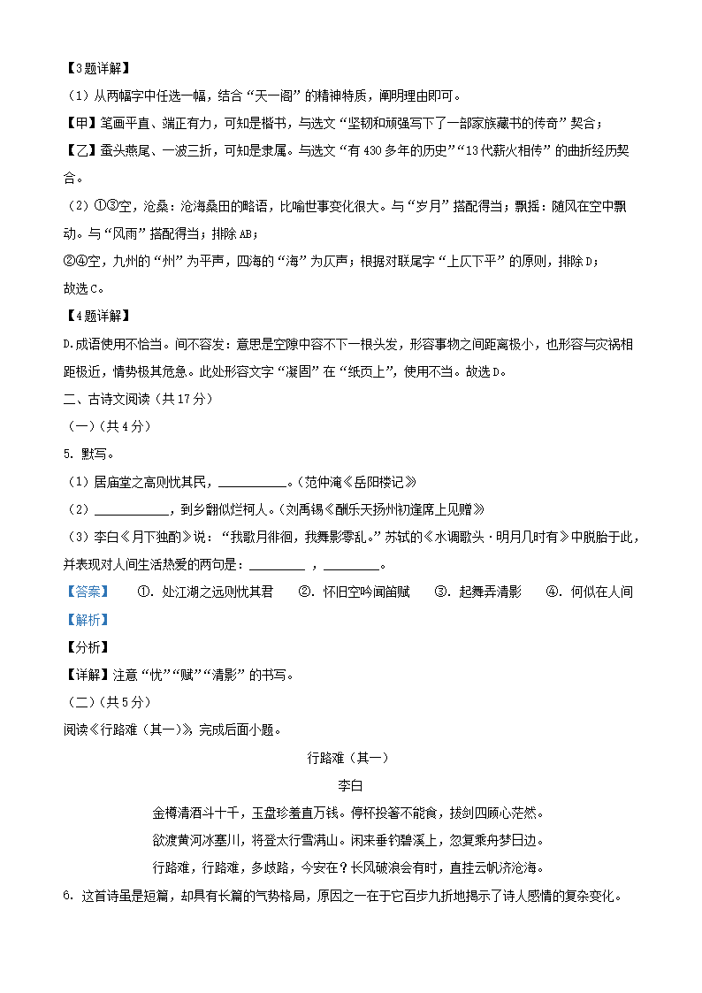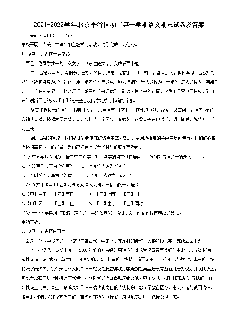 2021-2022学年北京平谷区初三第一学期语文期末试卷及答案(Word版)06-30