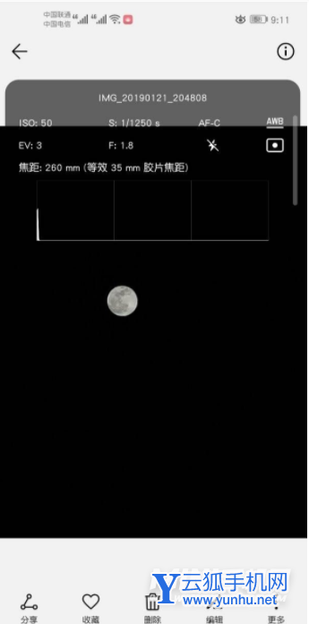 3、然后慢慢对焦,拍月亮要开启相机上的AI功能(最上方),开启后将会对月亮进行识别,自动调节具体参数。