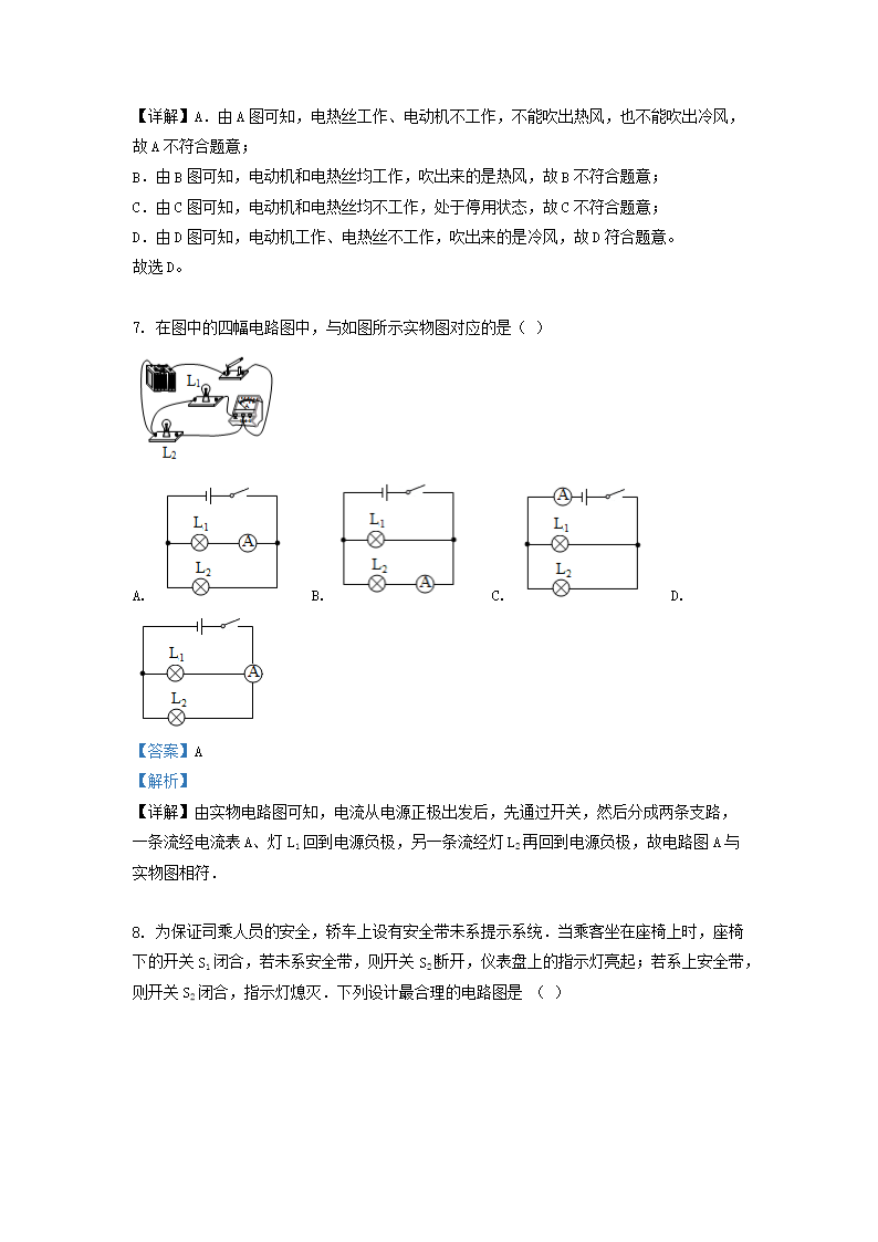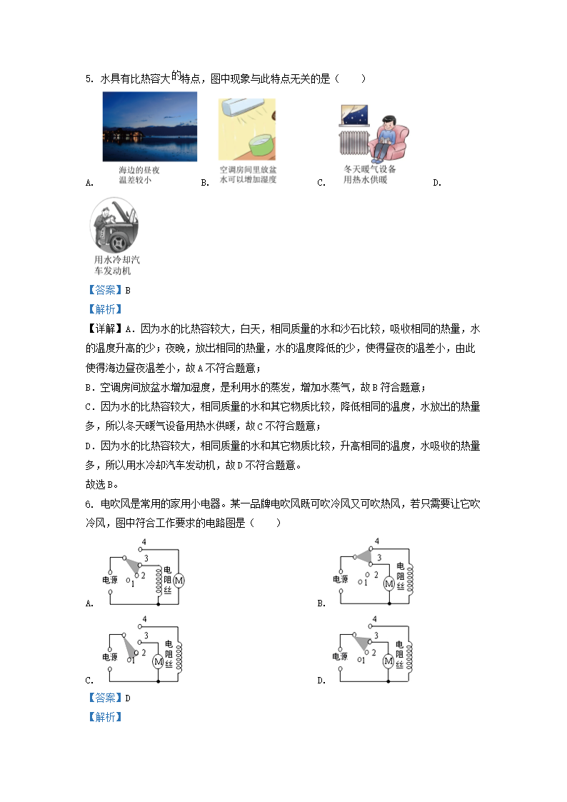 2022-2023学年广东省深圳福田区九年级第一学期物理期中试题及答案(Word版)08-25