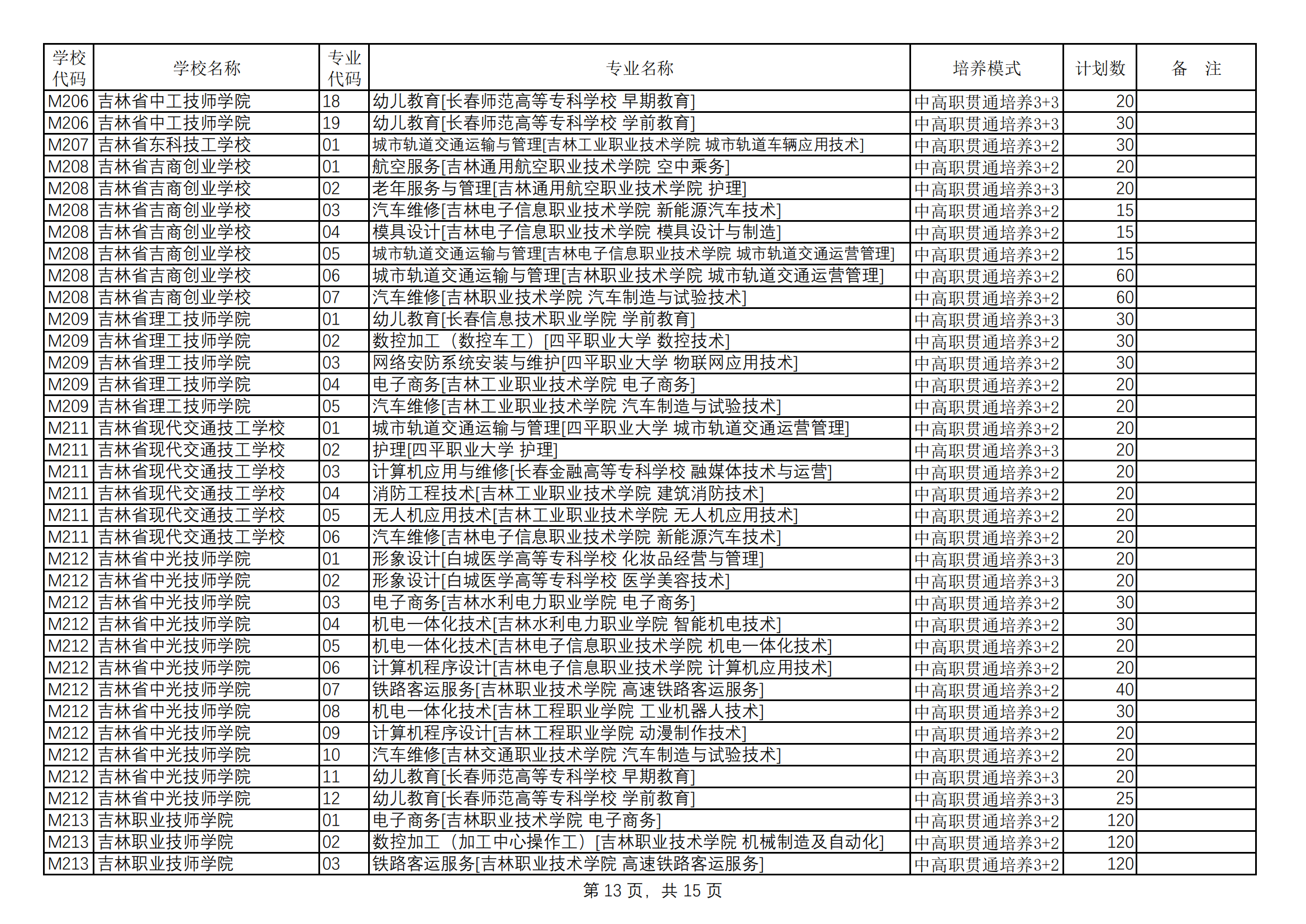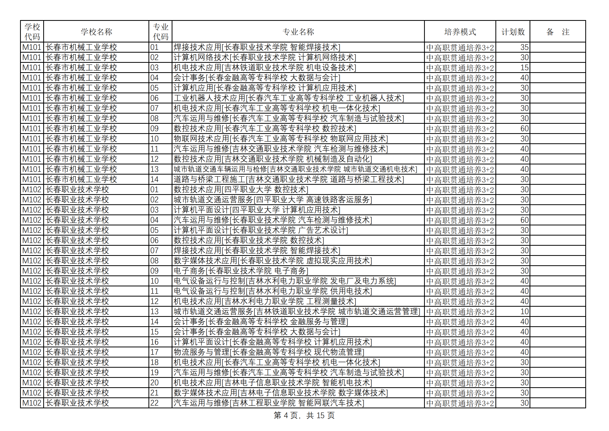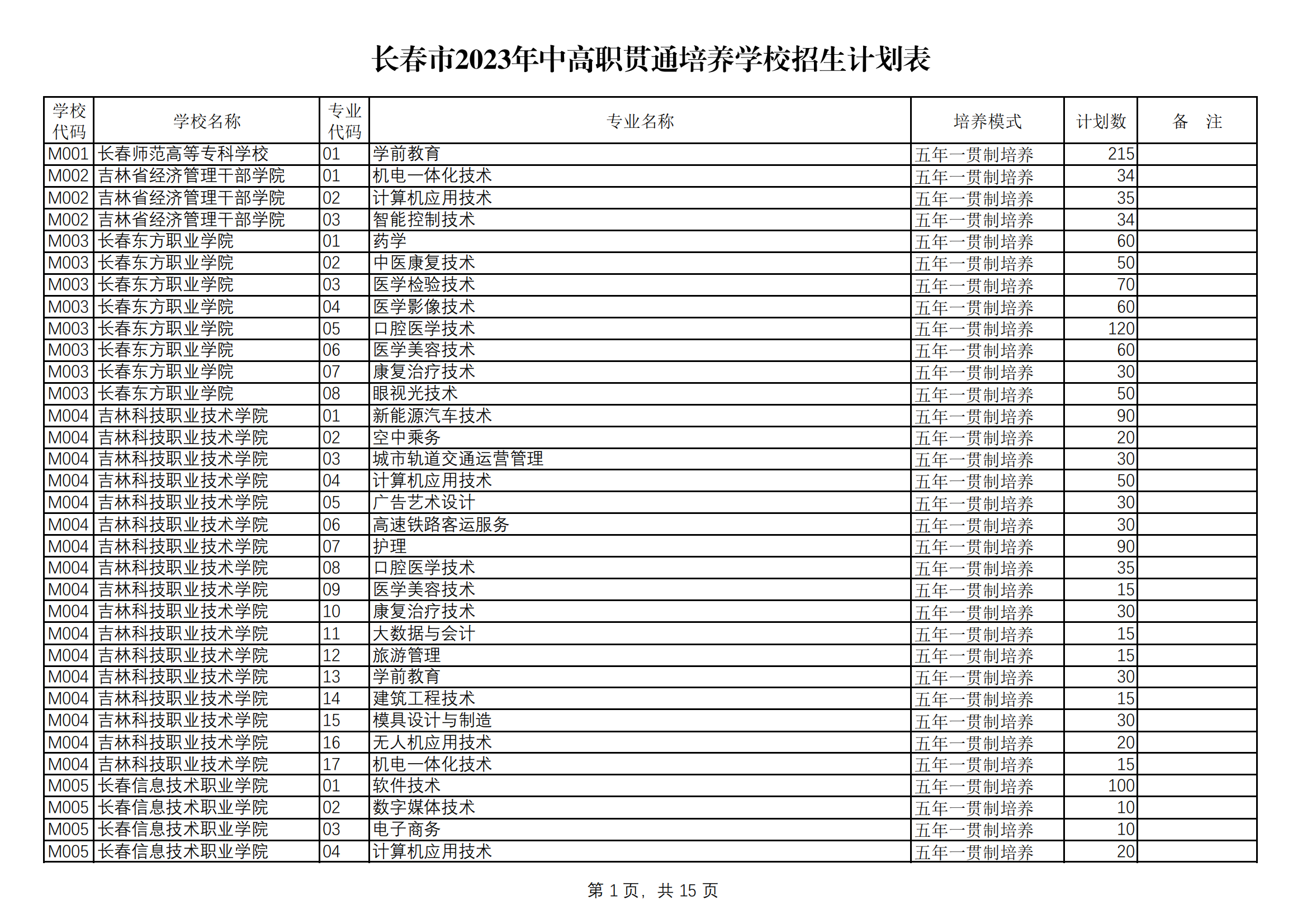 原文标题:长春市2023年中高职贯通培养招生计划表